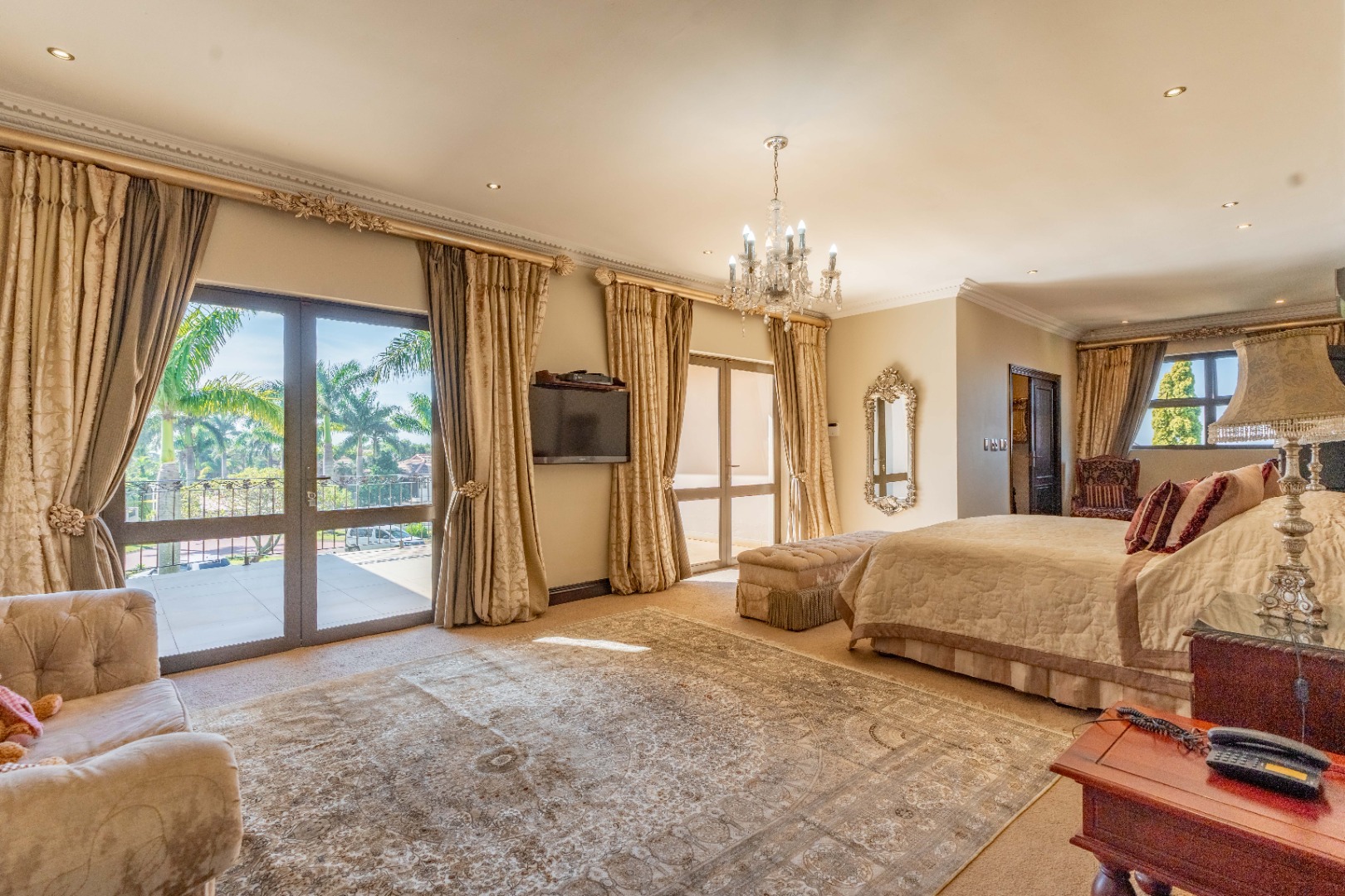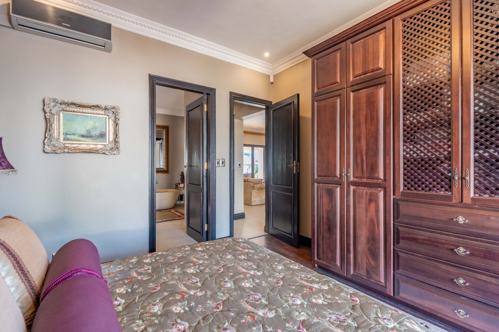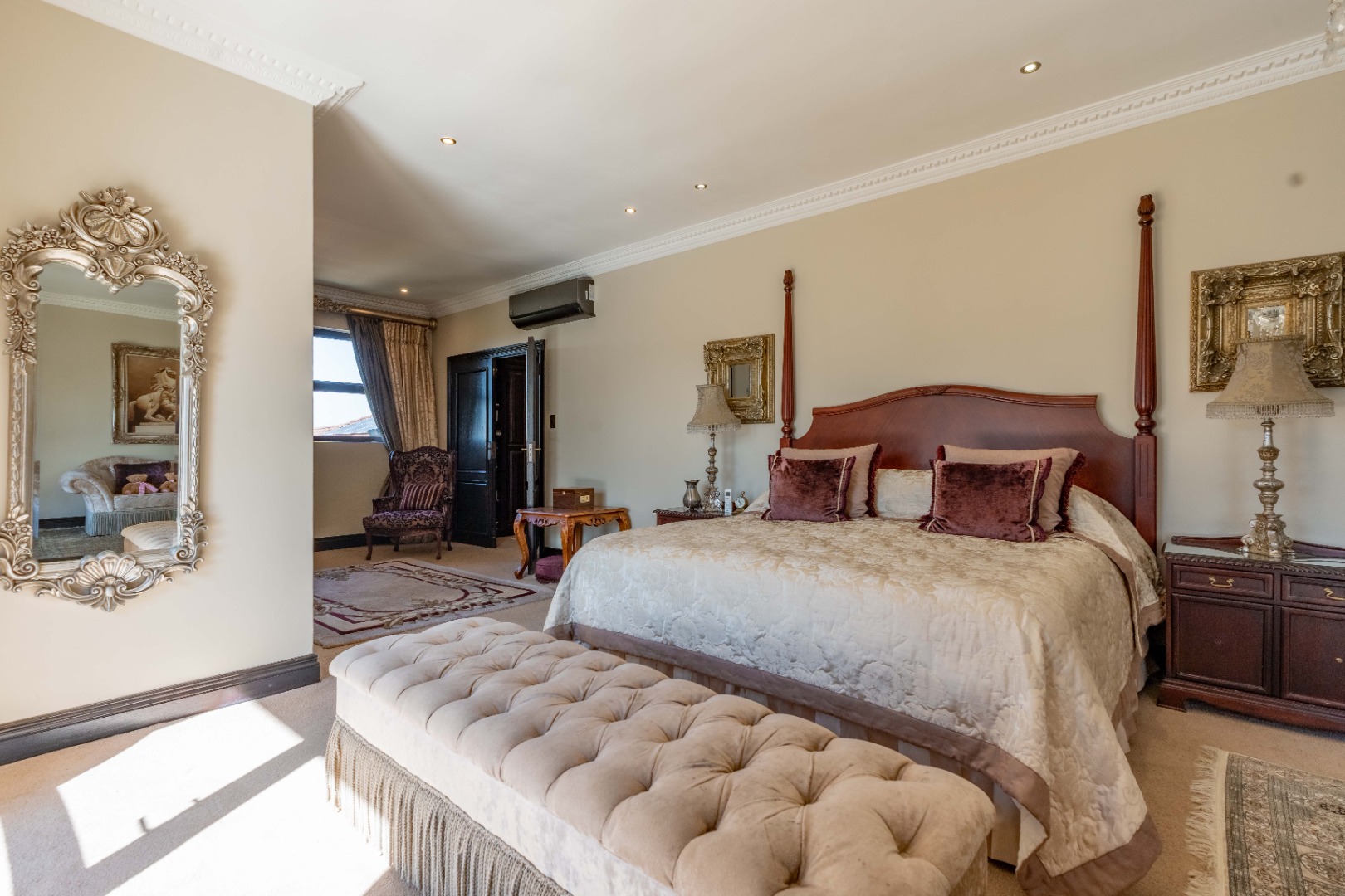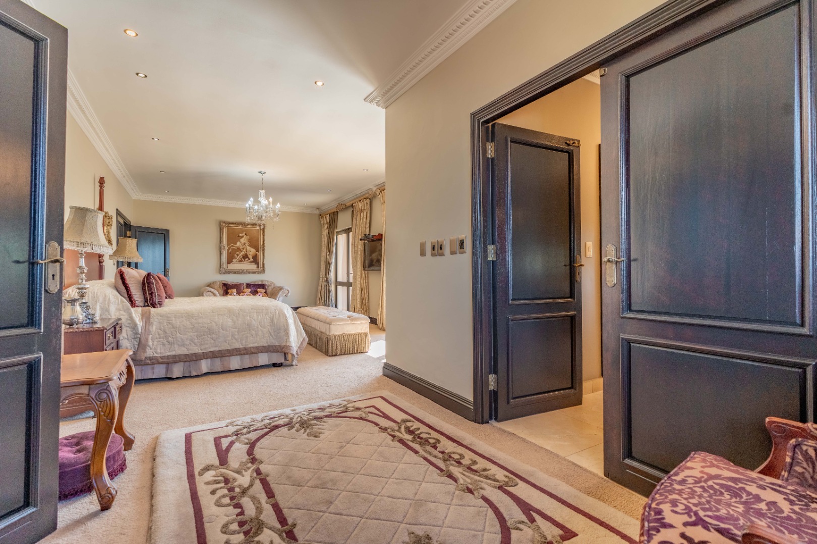 The downstairs floor plan is completed by a 4th ensuite bedroom, with the spacious upstairs featuring 3 bedrooms, each with ensuite bathrooms, providing a peaceful retreat. The main bedroom is generous in size with a private lounge and walk-in closet.