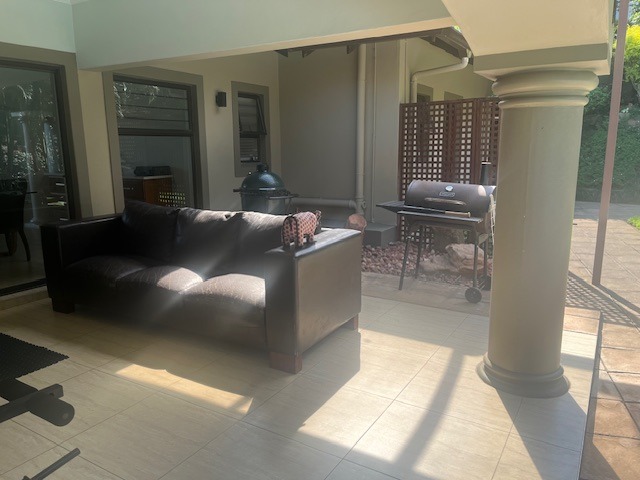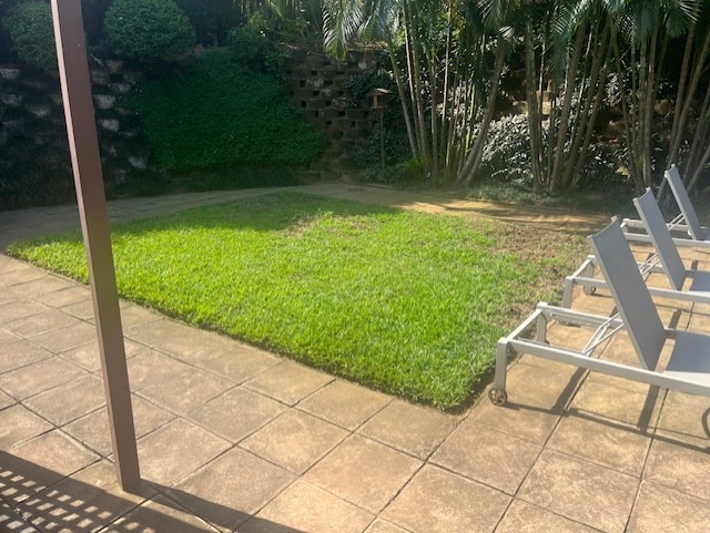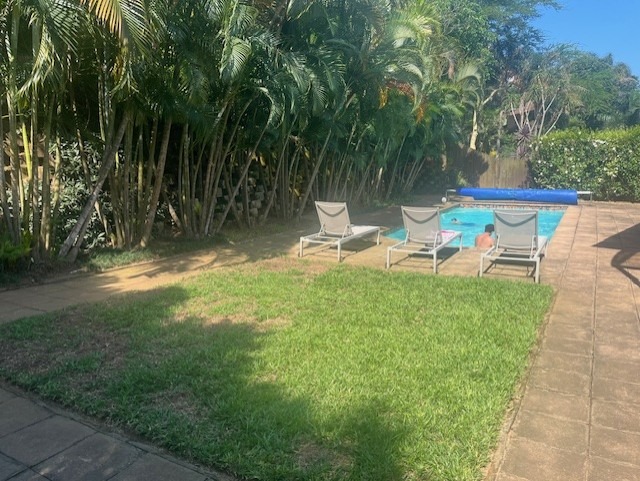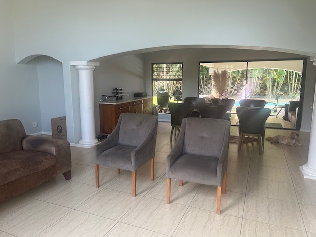 extend onto a covered entertainment patio overlooking a heated pool and lush