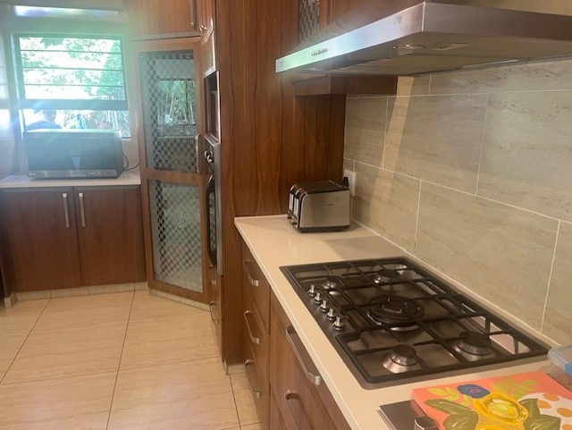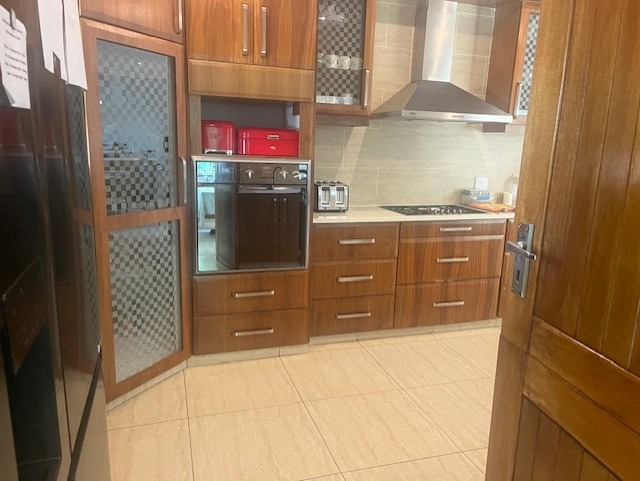 fitted with ample cupboards, gas hob, eye level oven, space for double door