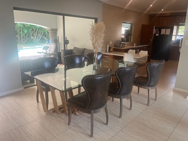 seamlessly from the living and dining areas into a well-appointed kitchen