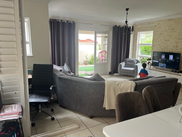 Spacious open plan living area comprising of dining, lounge, kitchen plumbed for dishwasher, separate scullery area with a door to the courtyard and garden. There is space for a built in braai on the patio where you can entertain or relax and enjoy the birdlife in the neat garden maintained by the complex. Upstairs are three bedrooms and two bathrooms. The main bedroom is large enough for a king size bed, has ample cupboard space, an en-suite bathroom and a private balcony. The family bathroom