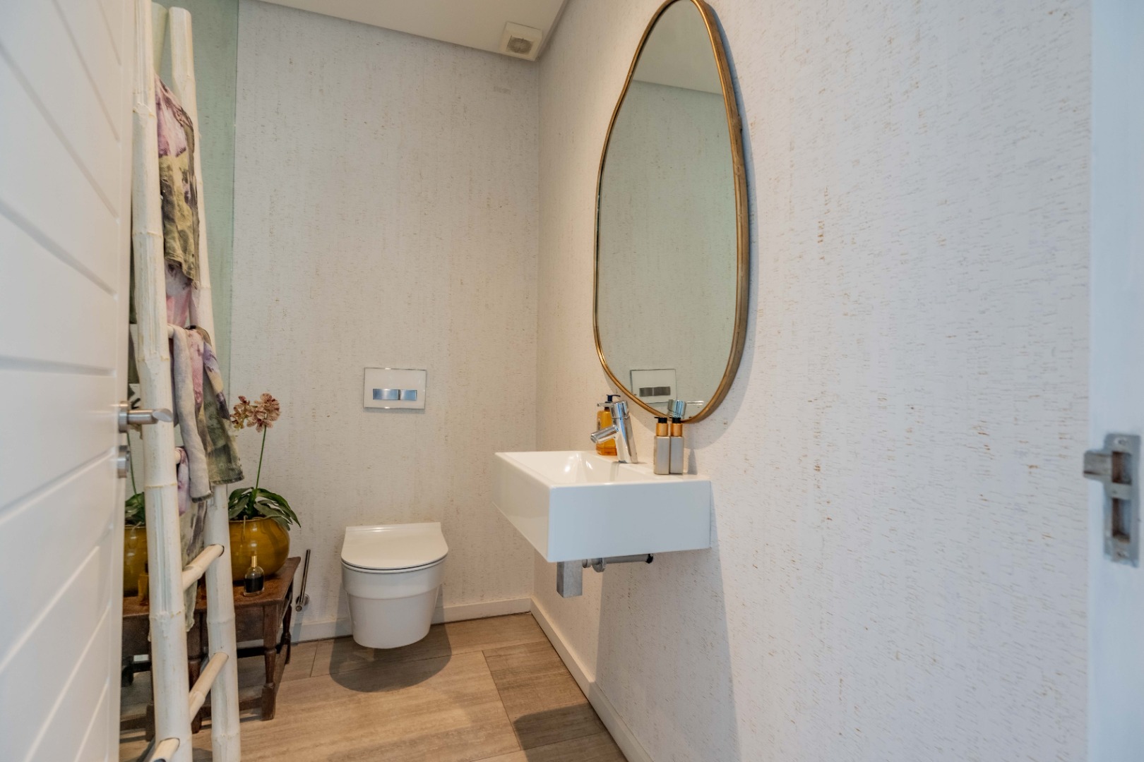 Offering 4 large bedrooms all en-suites, with the main bedroom featuring a walk in dressing room. Guest loo, a modern kitchen with caser stone counter top, integrated fridge and freezer, gas stove, a separate scullery and laundry.