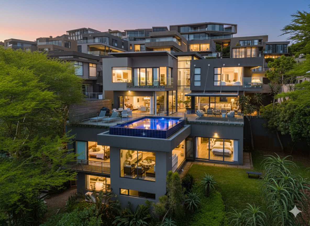A magnificent fully furnished family home, set in the prestigious estate "THE EXECUTIVE" with 24hr security, electric fencing and CCTV surveillance. This spacious property has wonderful open plan flow through-out with stack back doors opening onto the deck, rim-flow pool and gorgeous landscaped indigenous garden.
