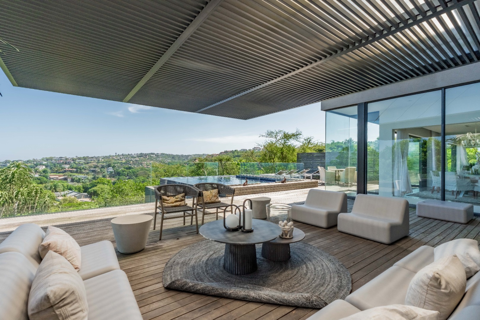 A magnificent fully furnished family home, set in the prestigious estate "THE EXECUTIVE" with 24hr security, electric fencing and CCTV surveillance. This spacious property has wonderful open plan flow through-out with stack back doors opening onto the deck, rim-flow pool and gorgeous landscaped indigenous garden.
