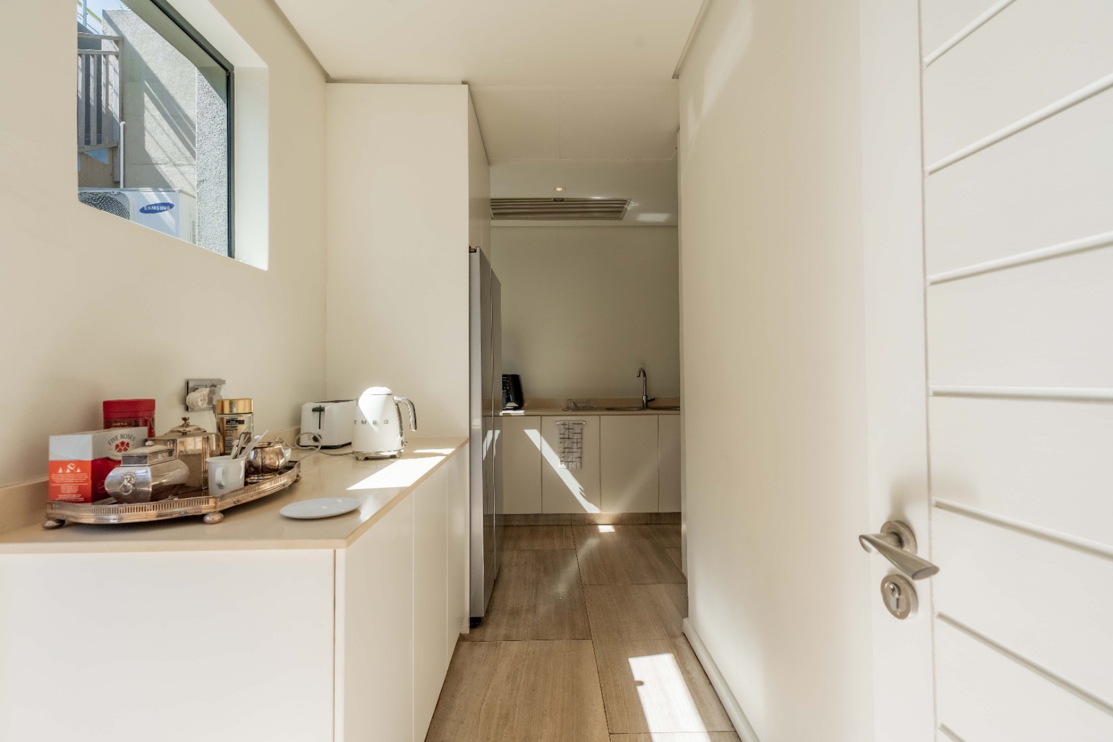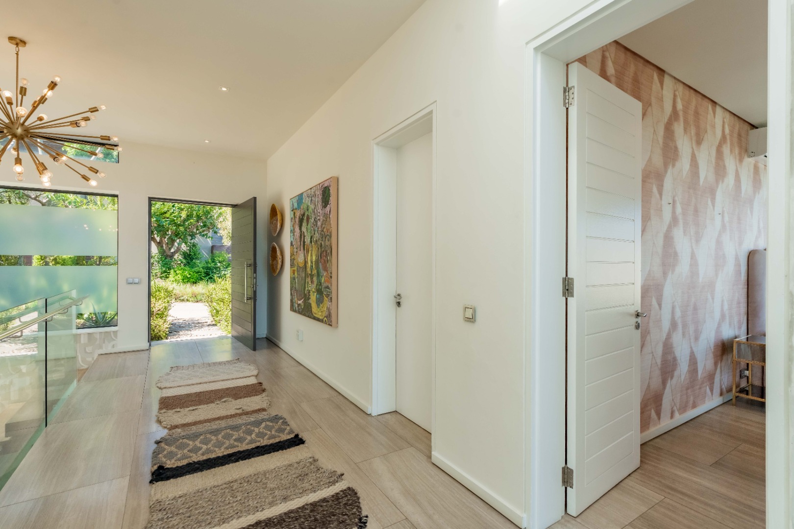 Offering 4 large bedrooms all en-suites, with the main bedroom featuring a walk in dressing room. Guest loo, a modern kitchen with caser stone counter top, integrated fridge and freezer, gas stove, a separate scullery and laundry.