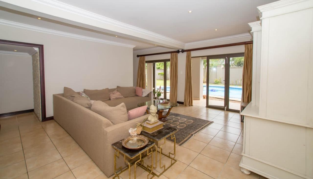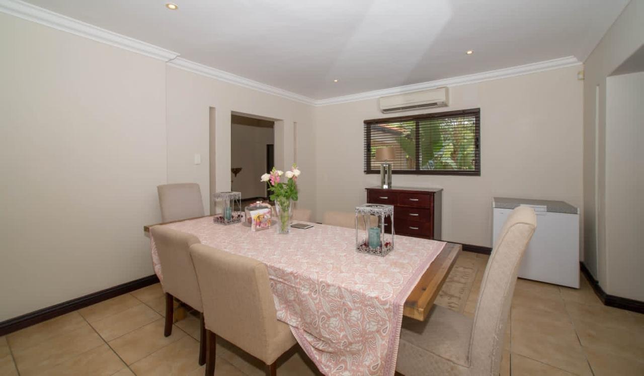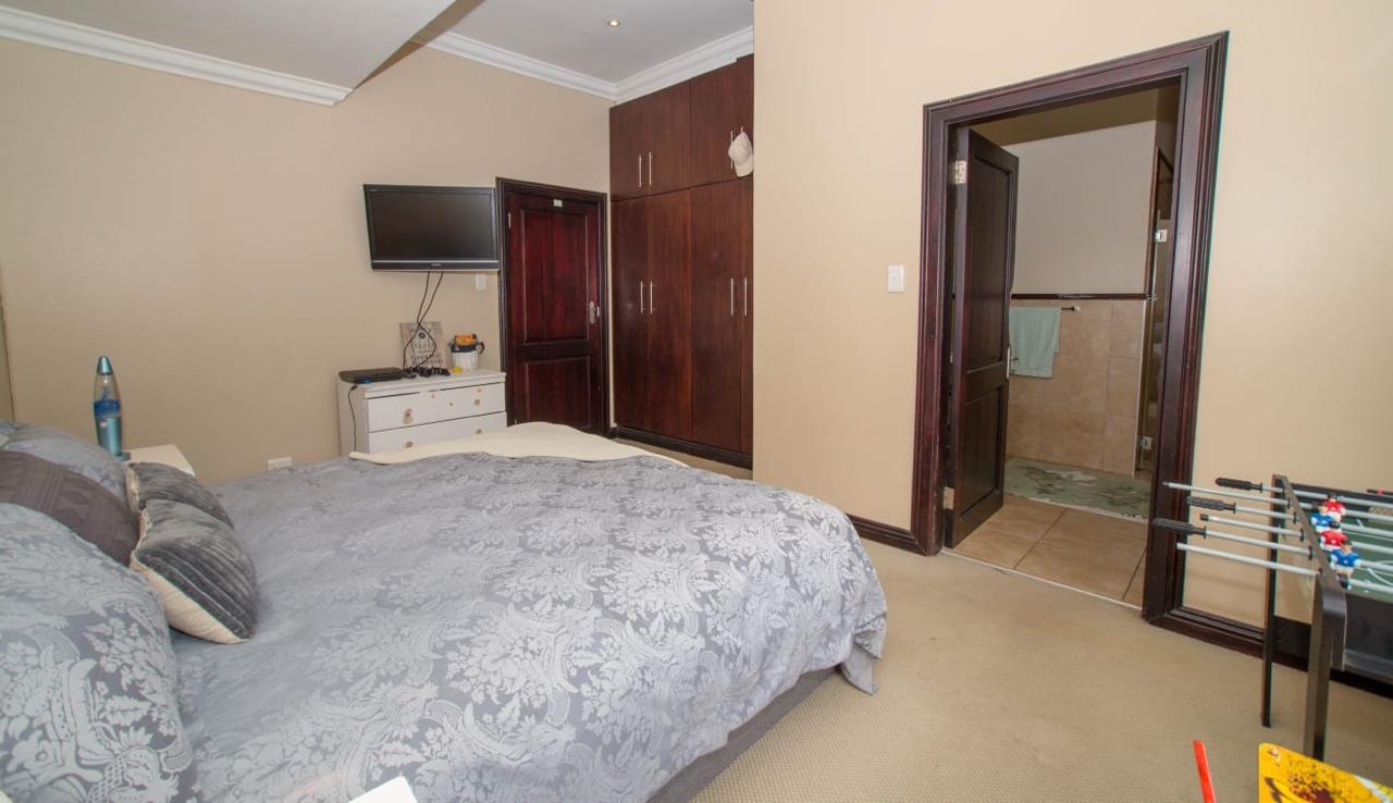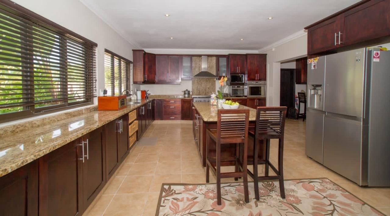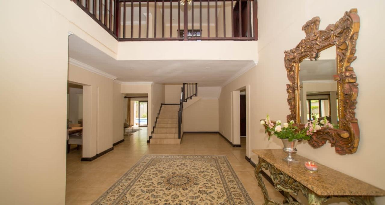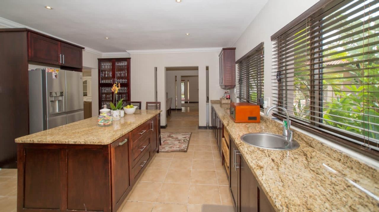 For those who love to cook, the chef-inspired kitchen is sure to impress with its high-end finishes and ample space with a centre island to die for. The indoor entertainment area is perfect for hosting guests, featuring a large built-in bar, stack-back doors for seamless outdoor flow, and a private guest bathroom. Step outside into your own private oasis with a stunning, sparkling pool, a tranquil fountain, a manicured garden, and built-in braai facilities for year-round entertaining.
