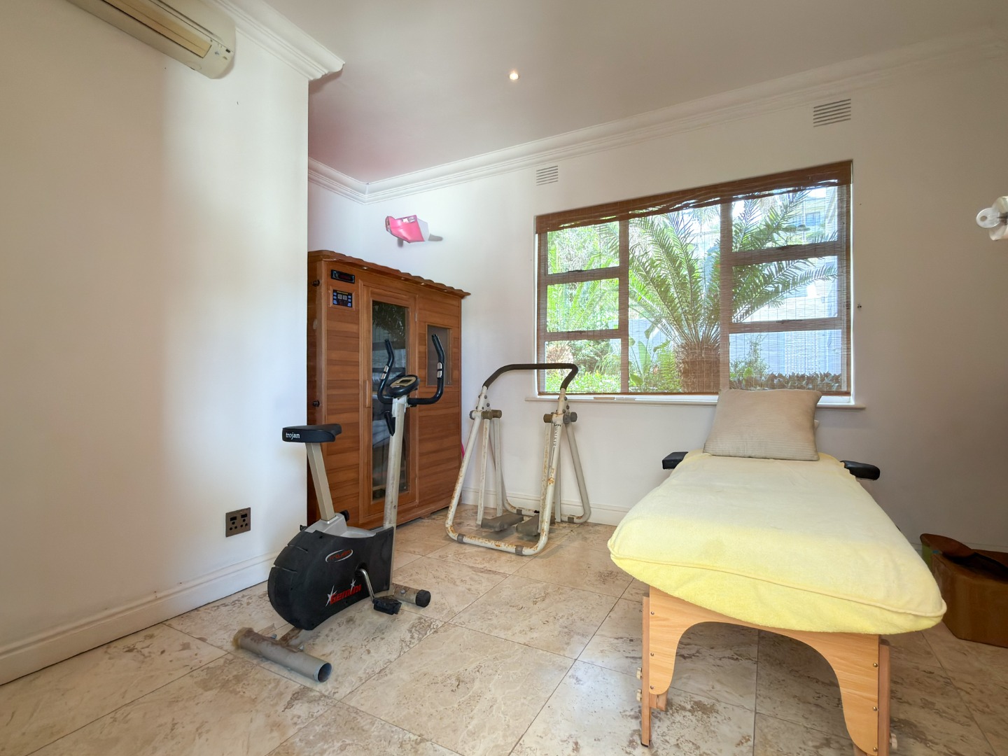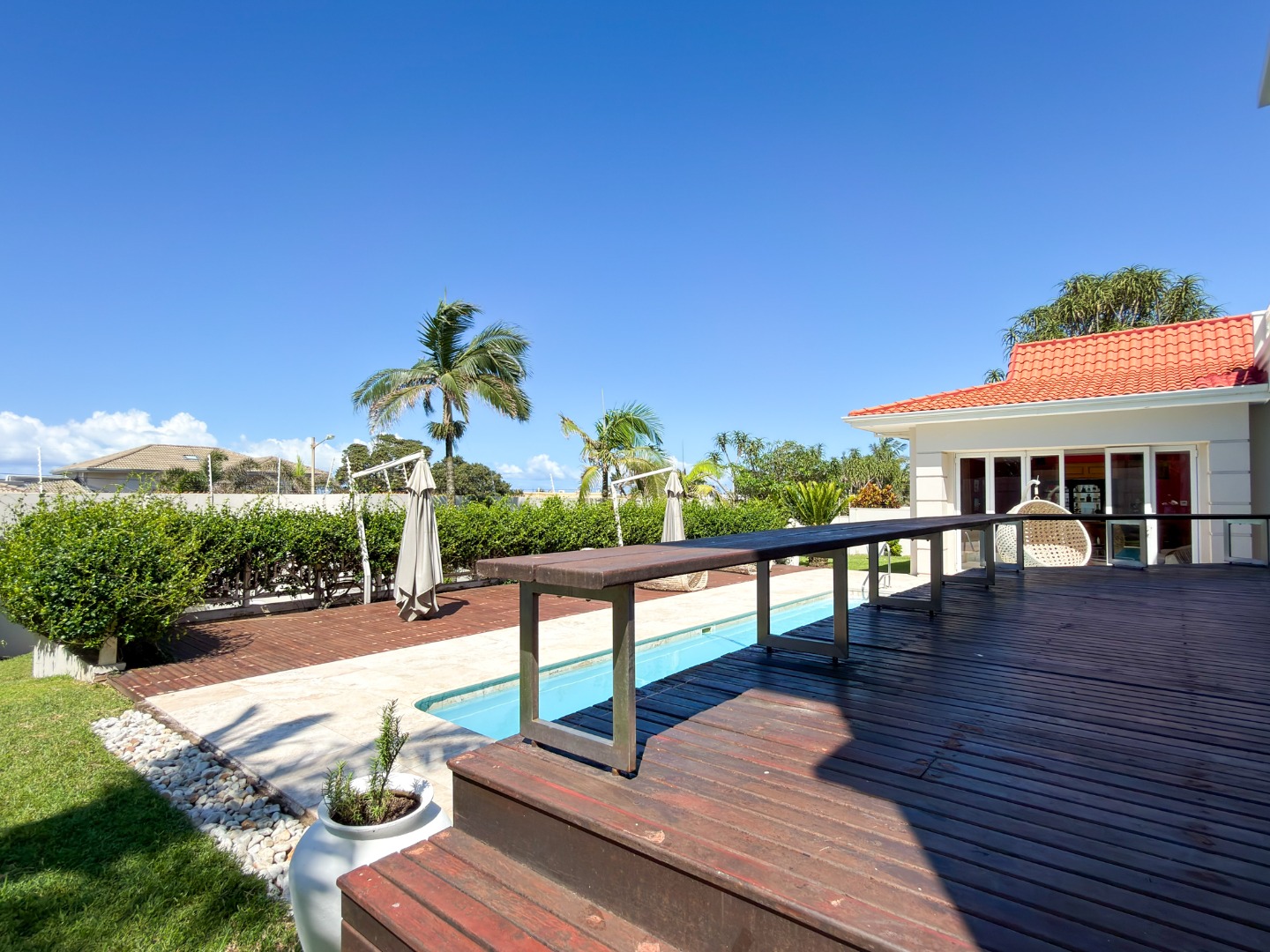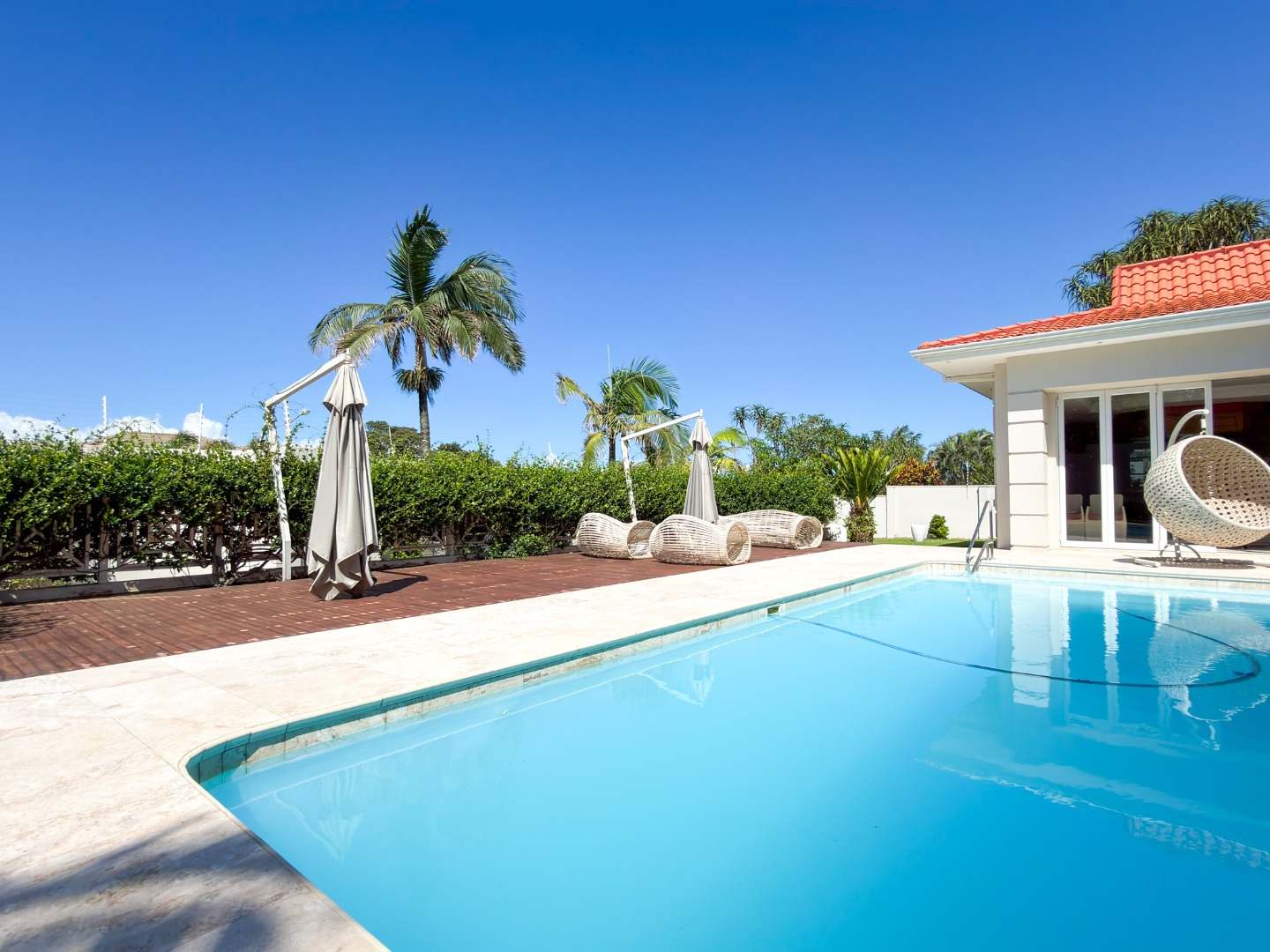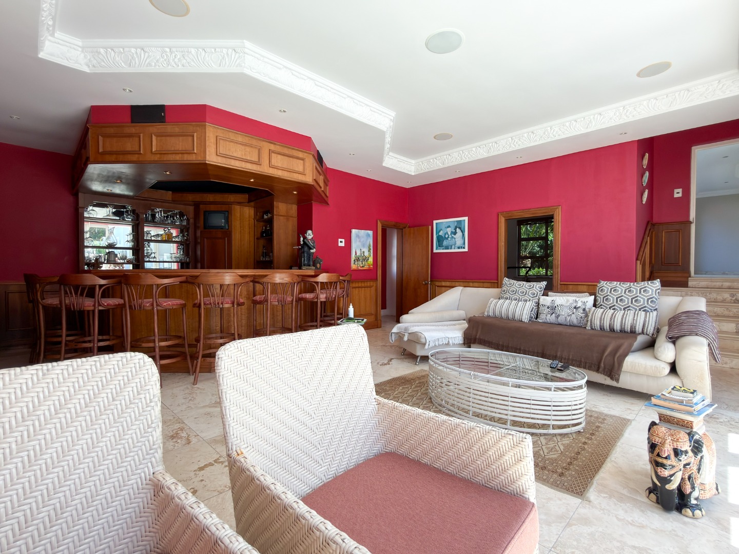 Designed with total relaxation and wellbeing in mind, the residence includes a suite of luxury features such as a fully equipped gym and a dedicated jacuzzi room. A private bar opens into the living areas, while marble finishes extend from the main living spaces to the pool surround, unifying the indoor and outdoor entertainment zones for a seamless lifestyle experience.