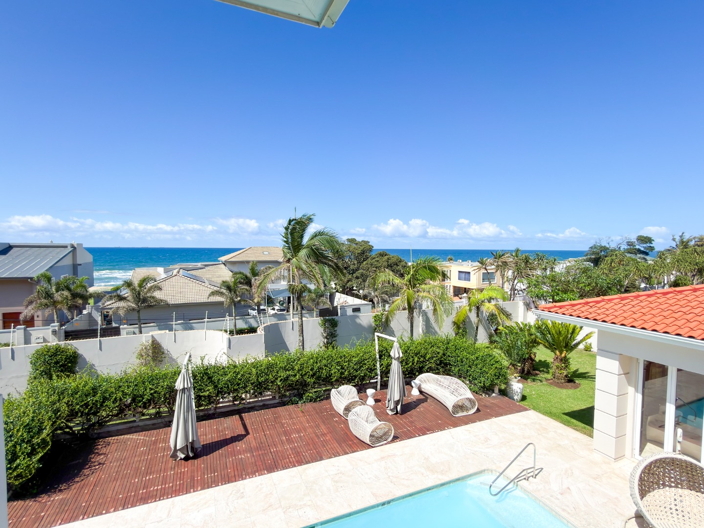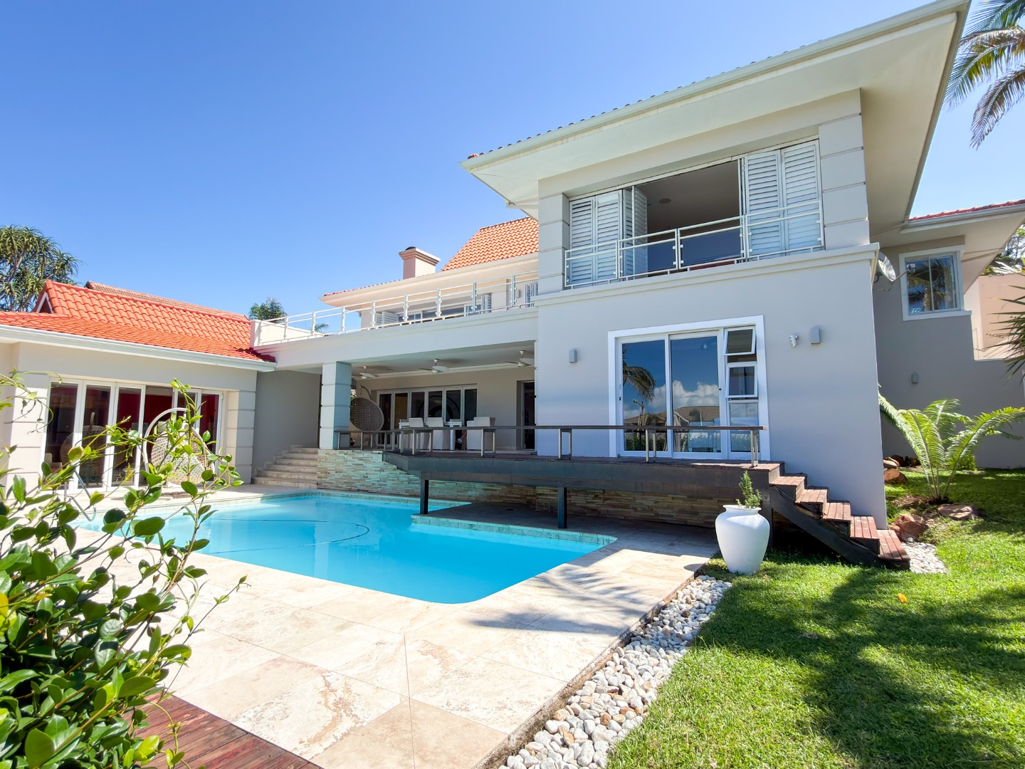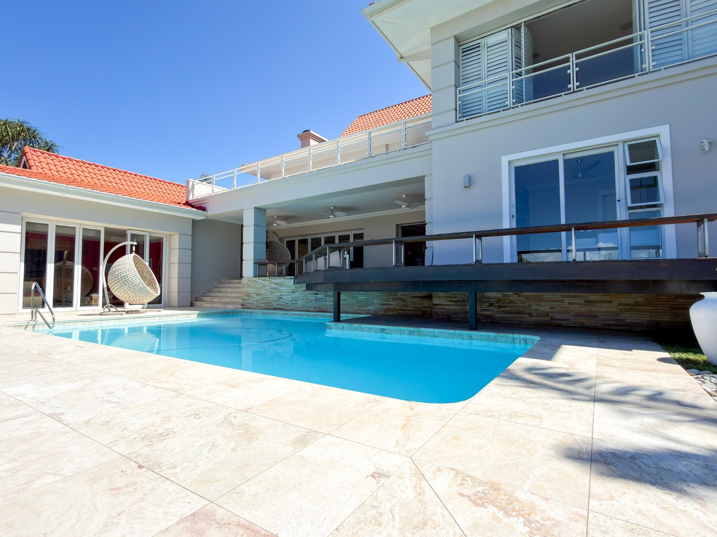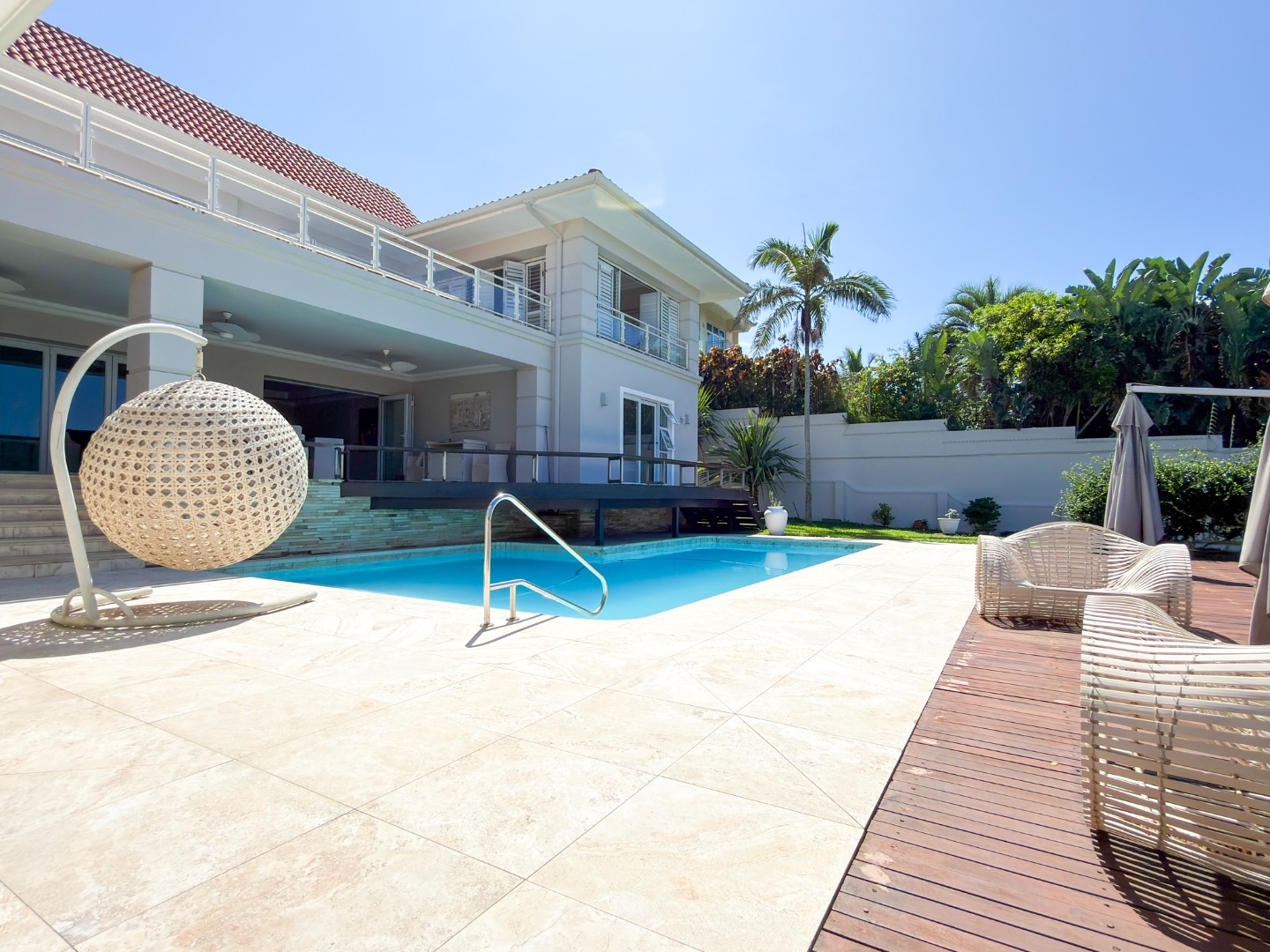The home offers four opulent en-suite bedrooms, three of which open onto private balconies overlooking a resort-style pool, manicured gardens, and the ocean. The master suite is a true sanctuary, featuring "his and hers" walk-in closets and separate bathrooms finished to a world-class standard. At the heart of the home is a gourmet chef’s kitchen equipped with high-end integrated appliances, a spacious walk-in fridge, and dedicated wine storage. For entertaining, the floor plan includes three distinct lounges and a formal dining area, providing versatile spaces for both large-scale gatherings and intimate family moments.