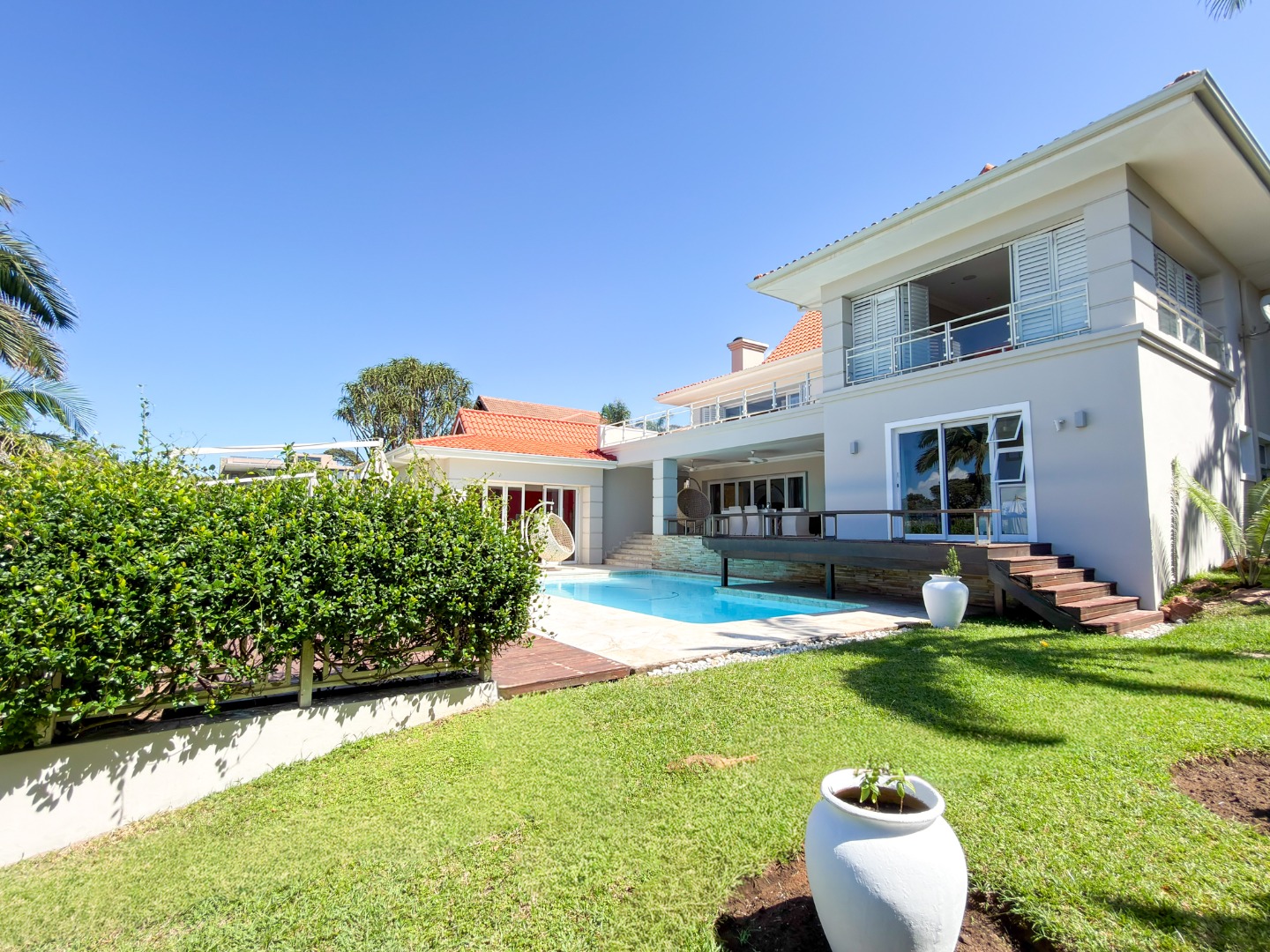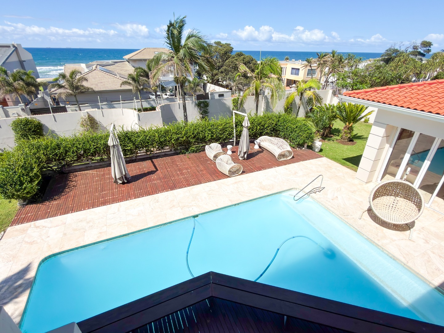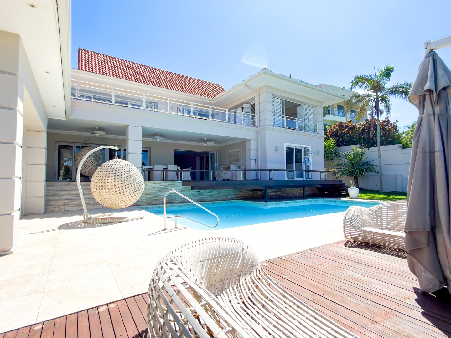 The home offers four opulent en-suite bedrooms, three of which open onto private balconies overlooking a resort-style pool, manicured gardens, and the ocean. The master suite is a true sanctuary, featuring "his and hers" walk-in closets and separate bathrooms finished to a world-class standard. At the heart of the home is a gourmet chef’s kitchen equipped with high-end integrated appliances, a spacious walk-in fridge, and dedicated wine storage. For entertaining, the floor plan includes three distinct lounges and a formal dining area, providing versatile spaces for both large-scale gatherings and intimate family moments.