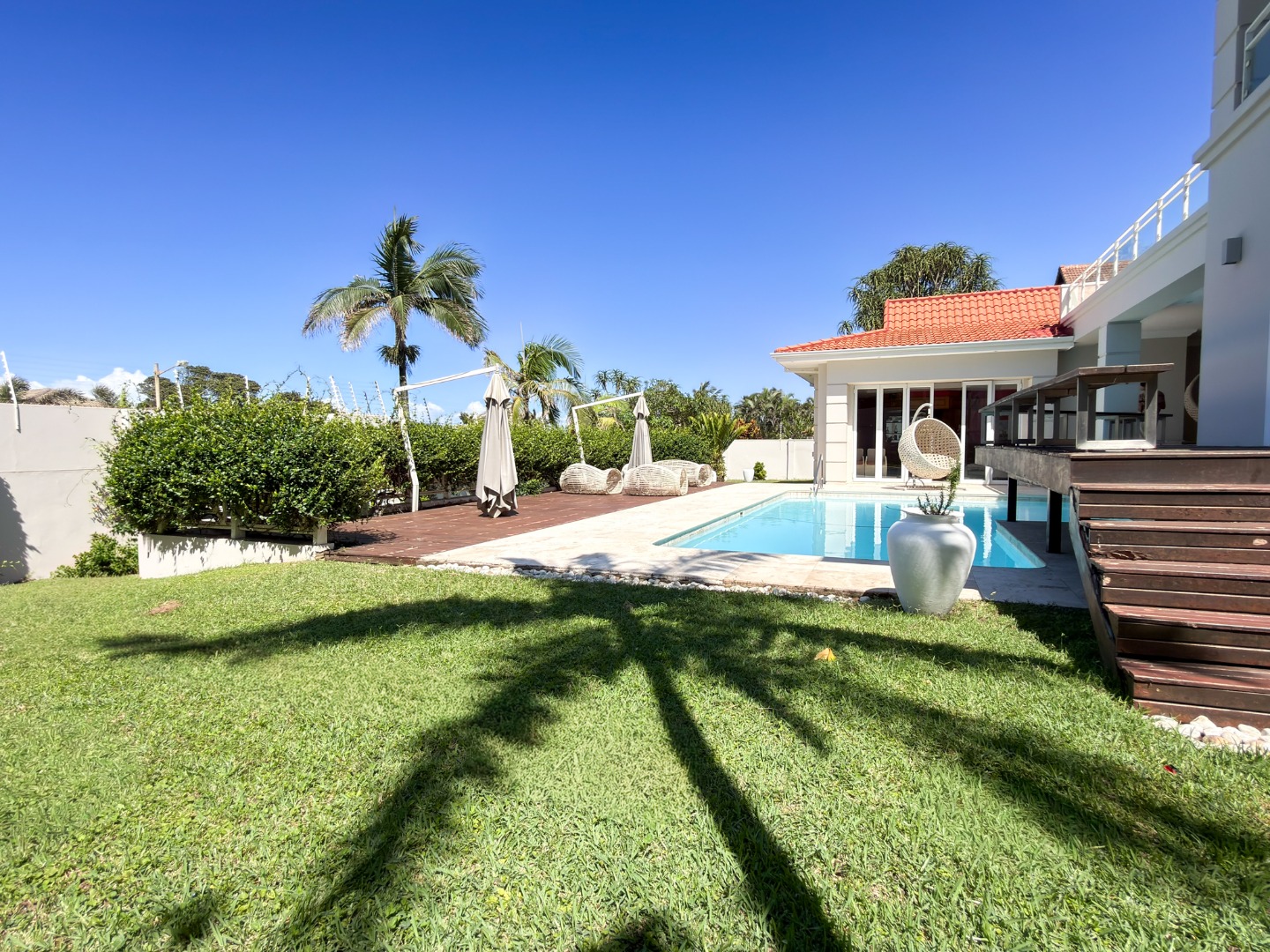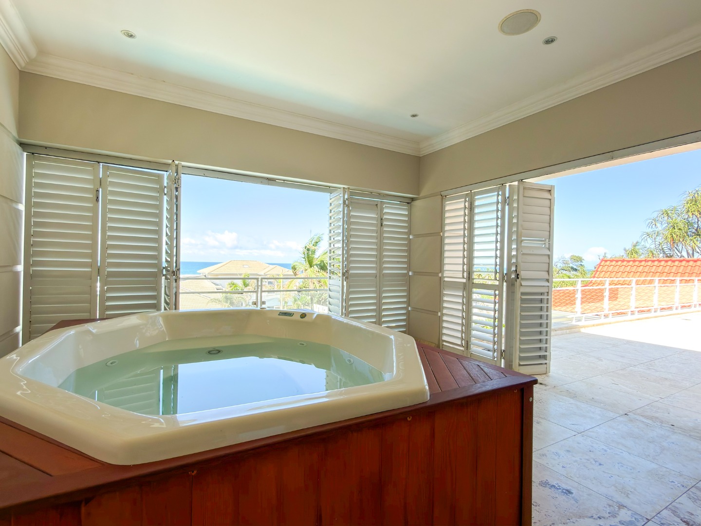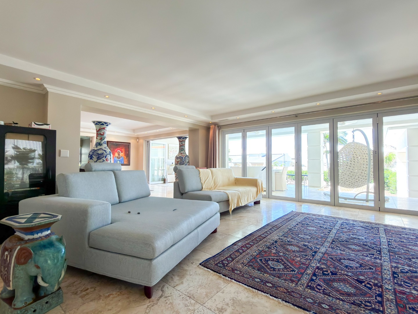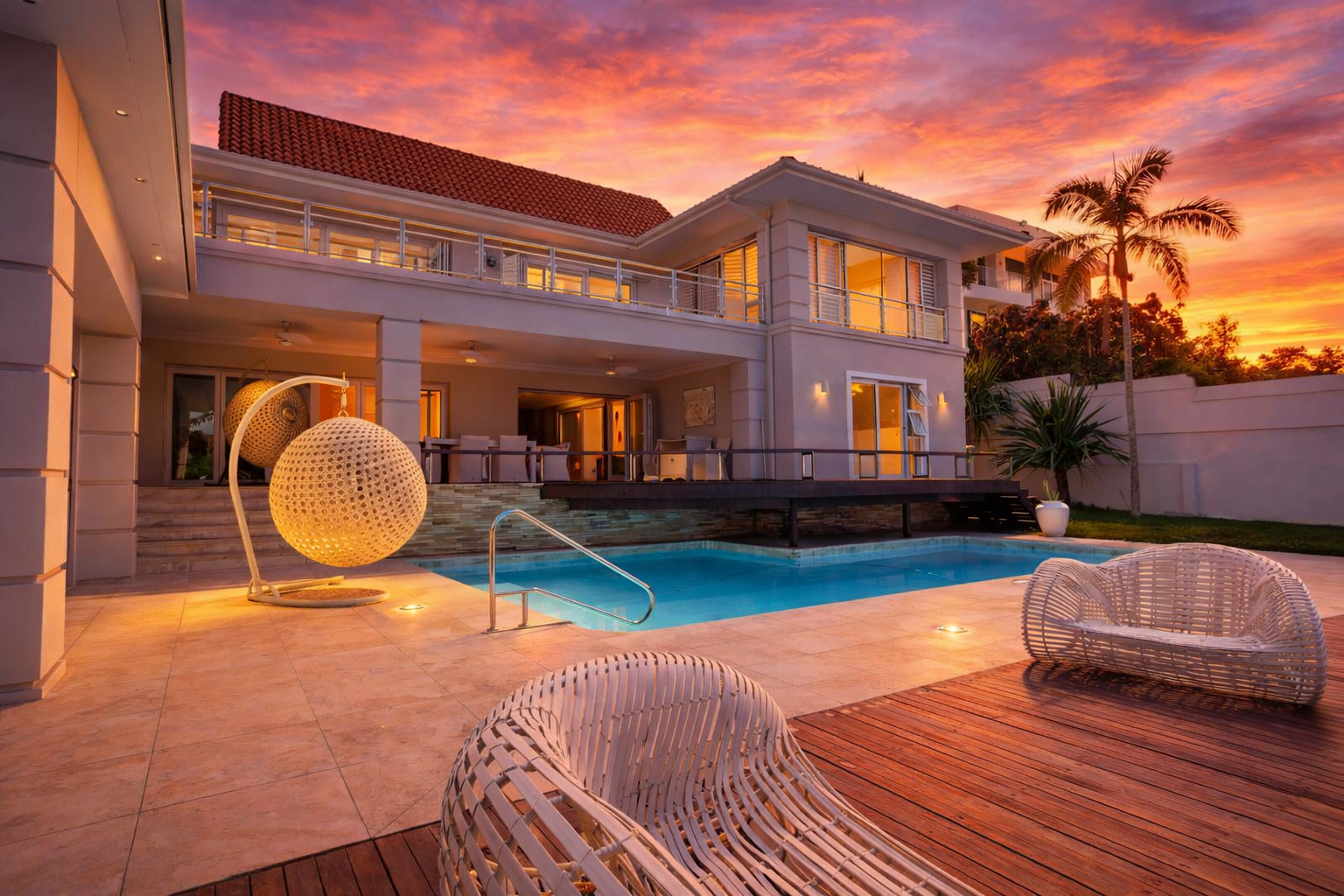 The home offers four opulent en-suite bedrooms, three of which open onto private balconies overlooking a resort-style pool, manicured gardens, and the ocean. The master suite is a true sanctuary, featuring "his and hers" walk-in closets and separate bathrooms finished to a world-class standard. At the heart of the home is a gourmet chef’s kitchen equipped with high-end integrated appliances, a spacious walk-in fridge, and dedicated wine storage. For entertaining, the floor plan includes three distinct lounges and a formal dining area, providing versatile spaces for both large-scale gatherings and intimate family moments.