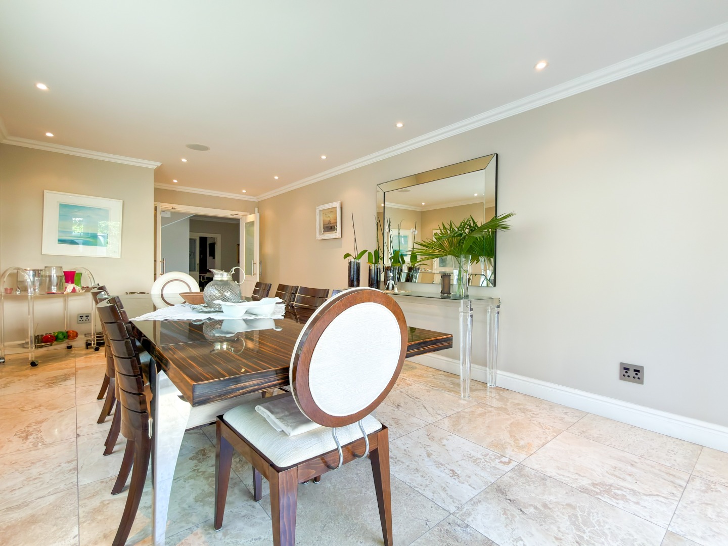 Further off-street parking can accommodate approximately ten more cars. The property is equipped with high-spec fixtures, bespoke joinery, and full smart-home integration. Practical essentials are also accounted for with a borehole and inverter backup system, alongside advanced security with comprehensive CCTV coverage.