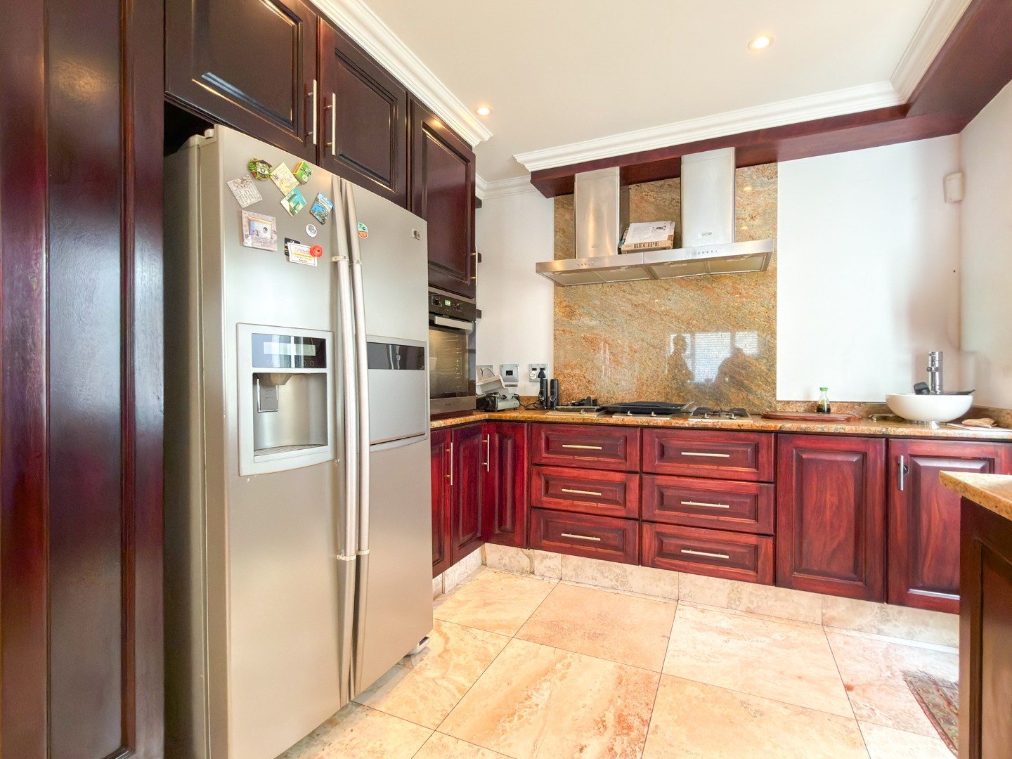 This exceptional Tuscan-inspired residence, situated on one of the area’s most prestigious streets, is a definitive statement home. Designed for the discerning buyer who prioritizes space, style, and uncompromised quality, the property features seamless marble flooring that flows throughout both the interior and exterior living spaces, creating a sense of timeless grandeur.