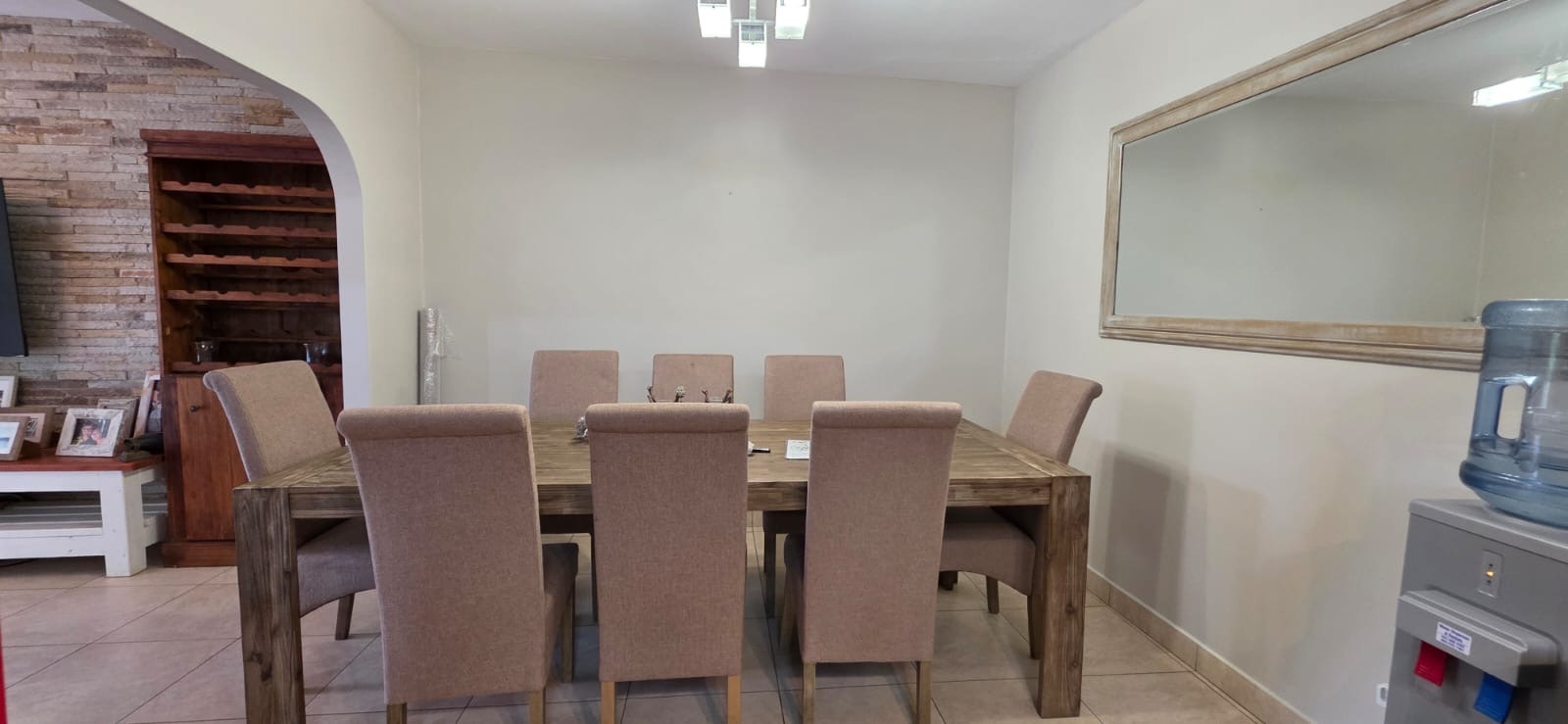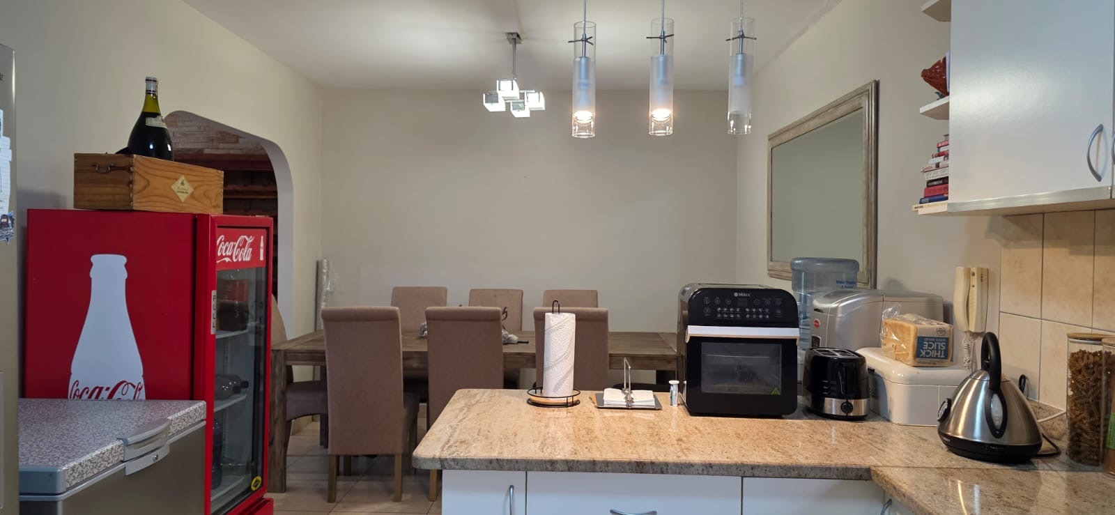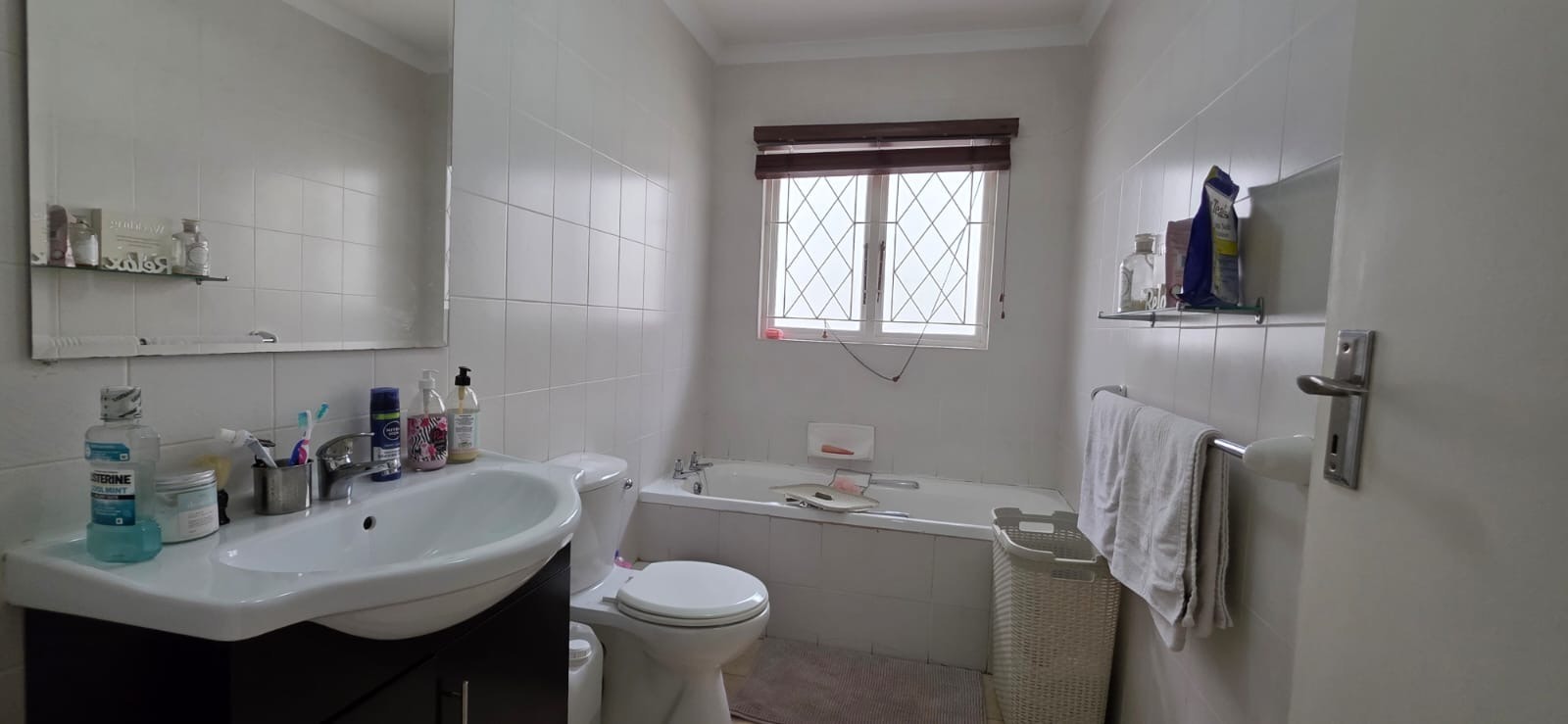 This home features three generously sized bedrooms with ceiling fans, carpets and built in cupboards. The main bedroom at the end of the passage is a good size, airconditioned and has a bathroom en-suite with a bath. The other two bedrooms share the family bathroom which has a bath and shower.