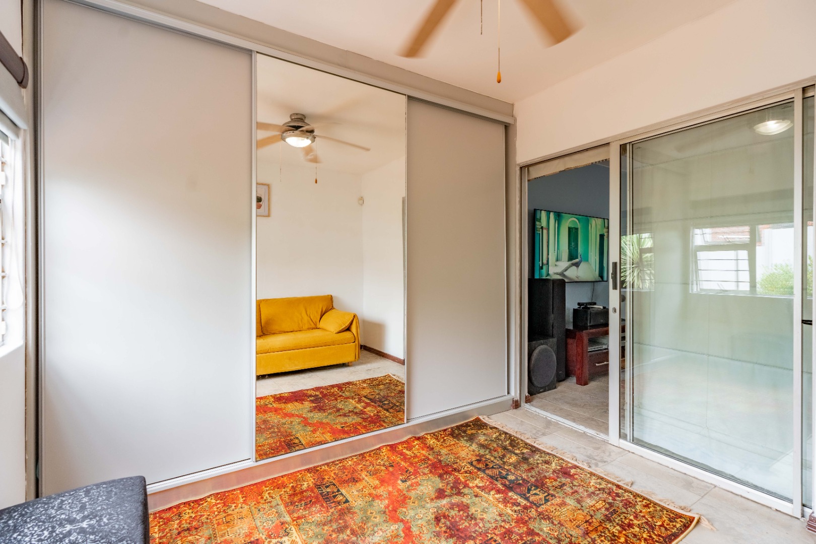 - Monkey screens in front of the windows and sliding door.