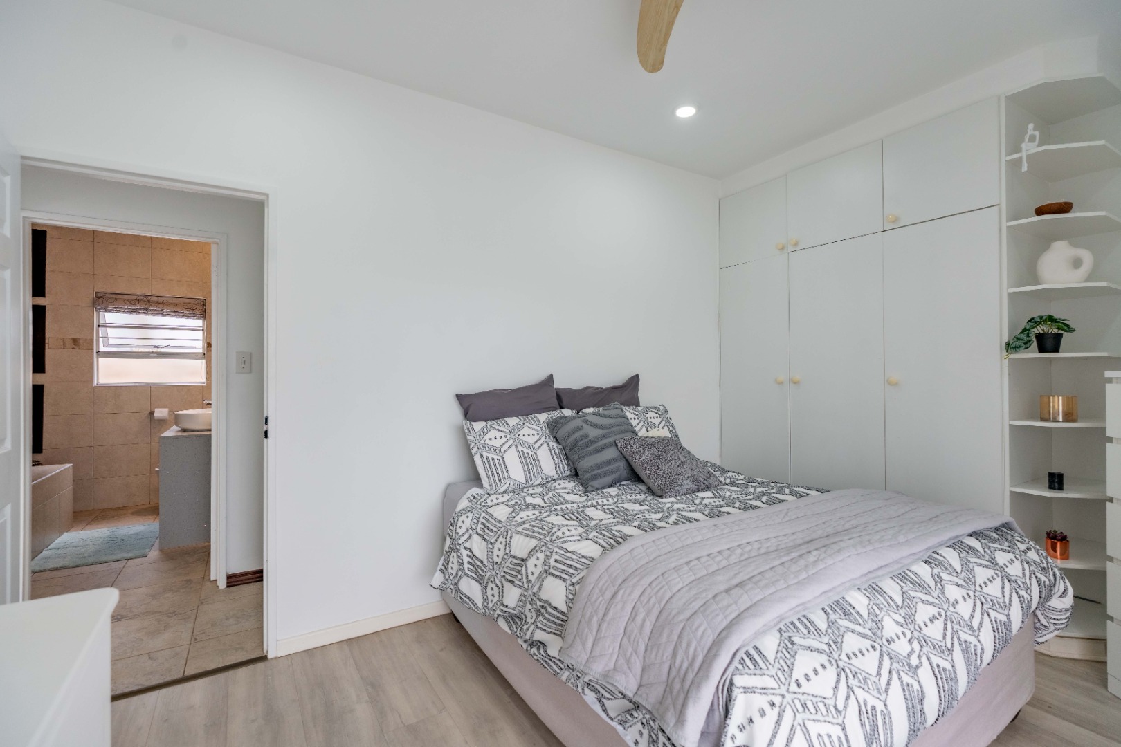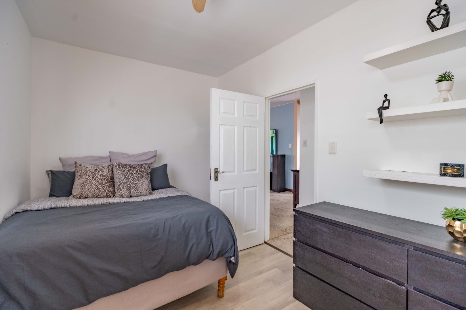 - Laminated wooden floors in the bedrooms.