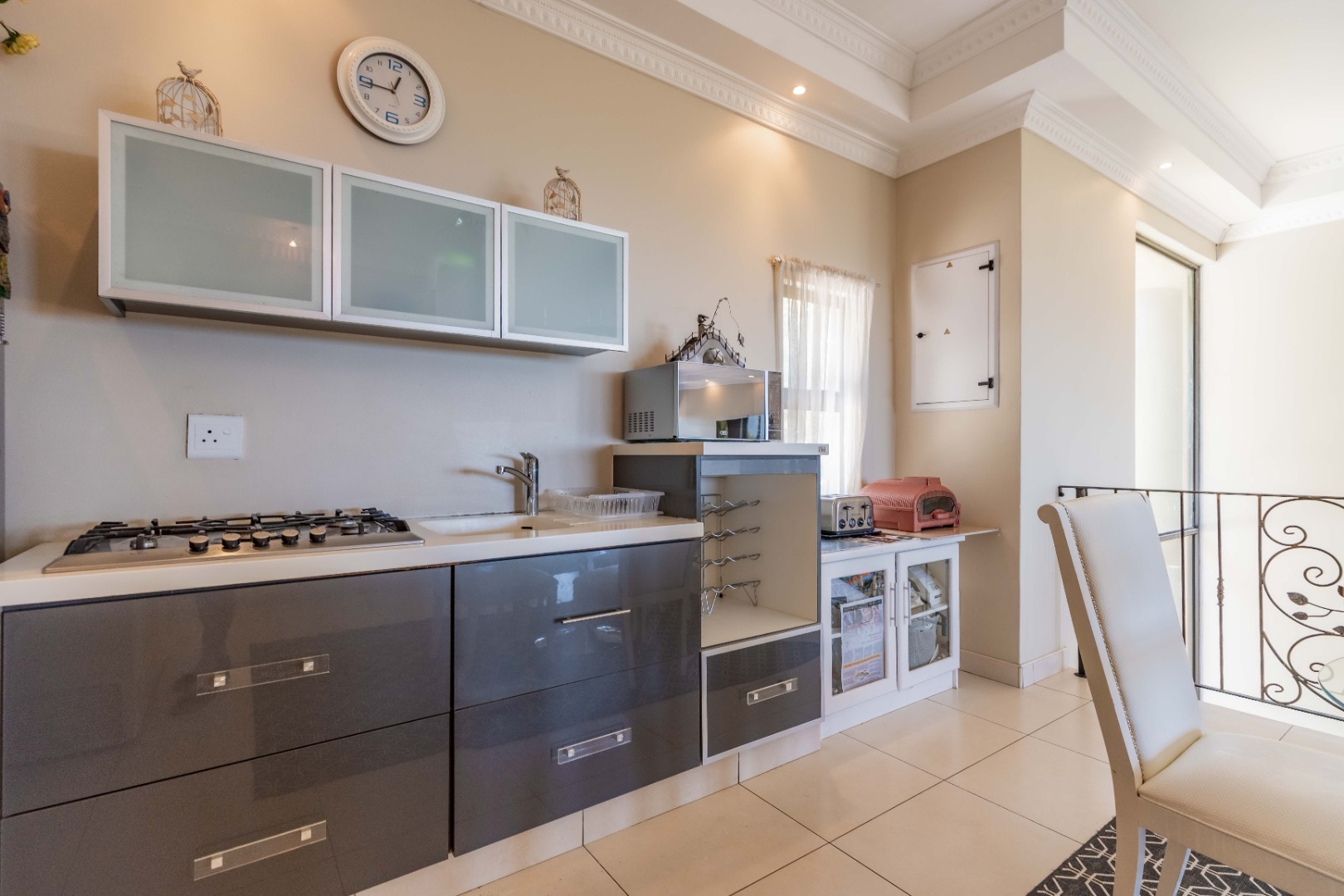 Features a beautiful kitchen with scullery, a spacious lounge/dining area basking in radiant sea views and a charming bedroom with balcony accompanied by a bathroom for added convenience. Outside you will find staff quarters with a bathroom to add to this level's functionality. The pièce de résistance is the enchanting atrium garden with amazing covered entertainment area, perfect for alfresco entertaining.