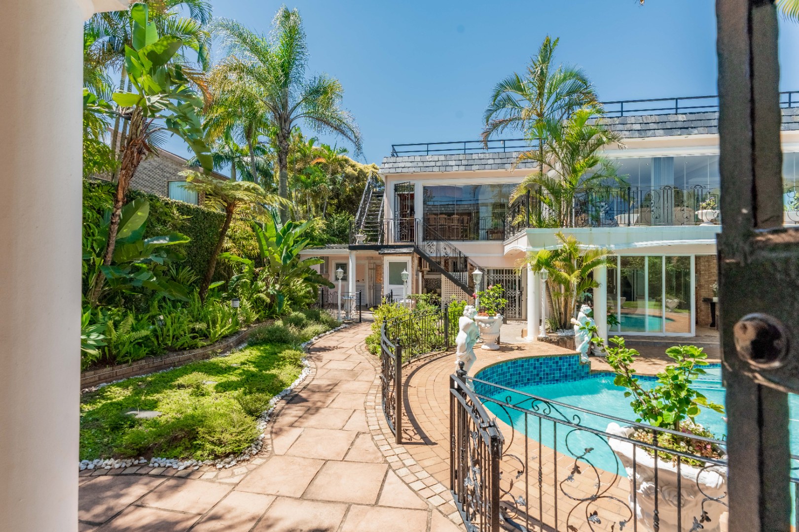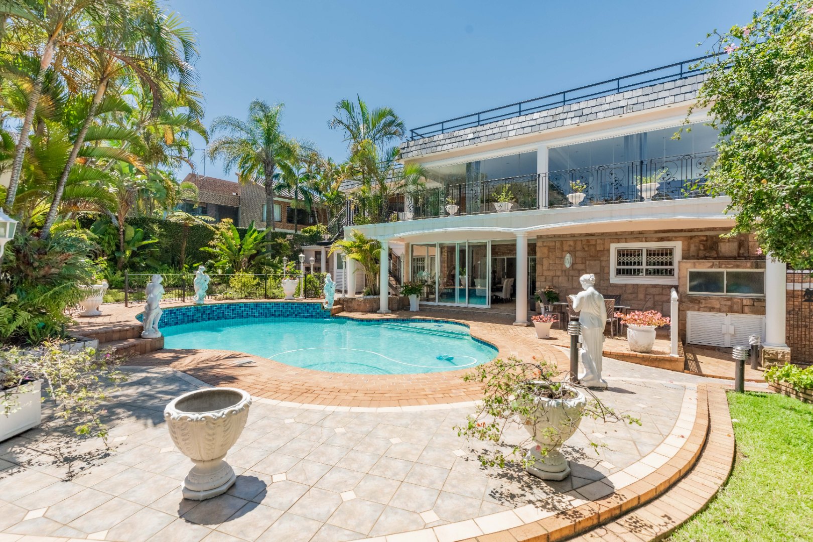 A grand entrance with sweeping staircase sets the tone for this refined home. Expansive living areas include an extra large formal lounge ideal for big screen entertainment, a sophisticated dining room for memorable gatherings, and a generous family room that flows effortlessly onto a covered patio overlooking a spectacular Grecian-inspired swimming pool and immaculate garden.