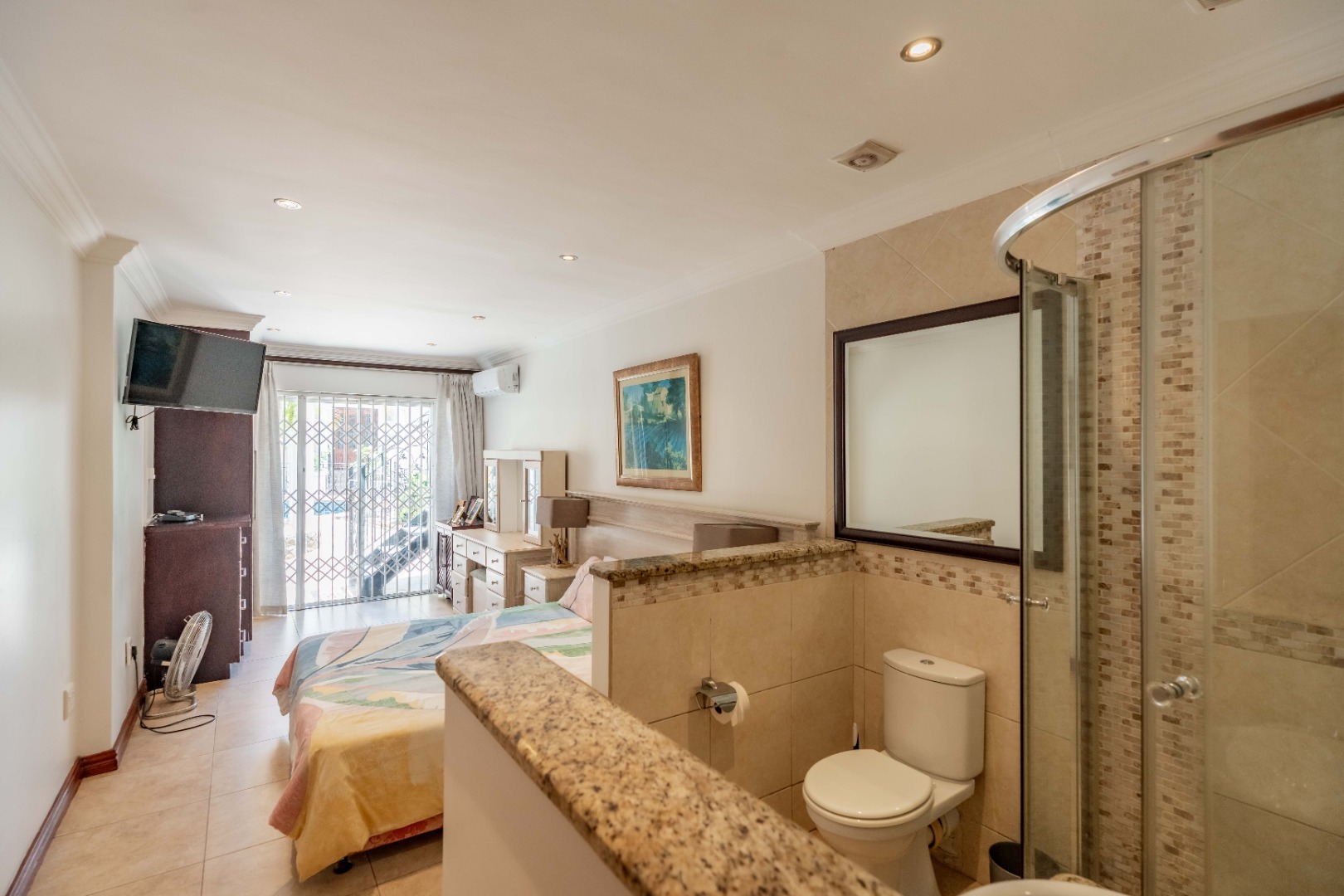 large studio room near the pool with toilet and shower