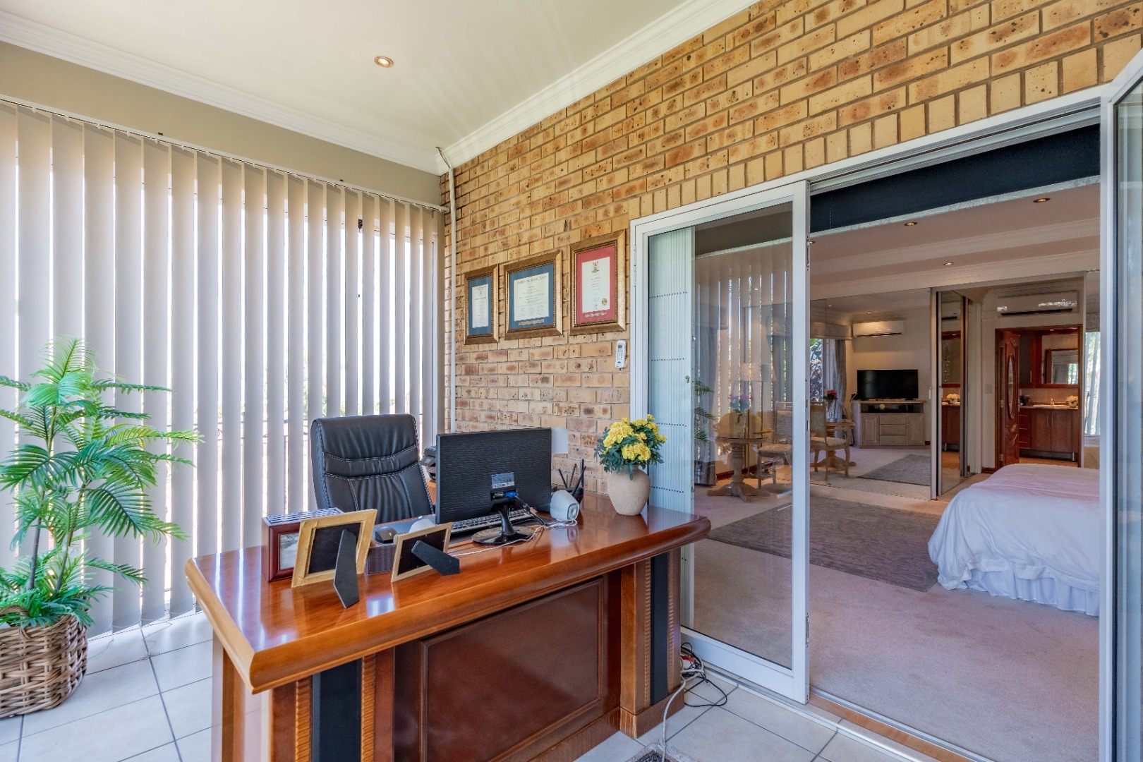 Positioned privately from the main residence, this second home offers exceptional flexibility. It features open-plan lounge, dining area and kitchen, guest toilet and a fully fitted study (which can serve as a third bedroom). The lounge and study open onto a covered patio deck, with the kitchen leading to the drying yard.