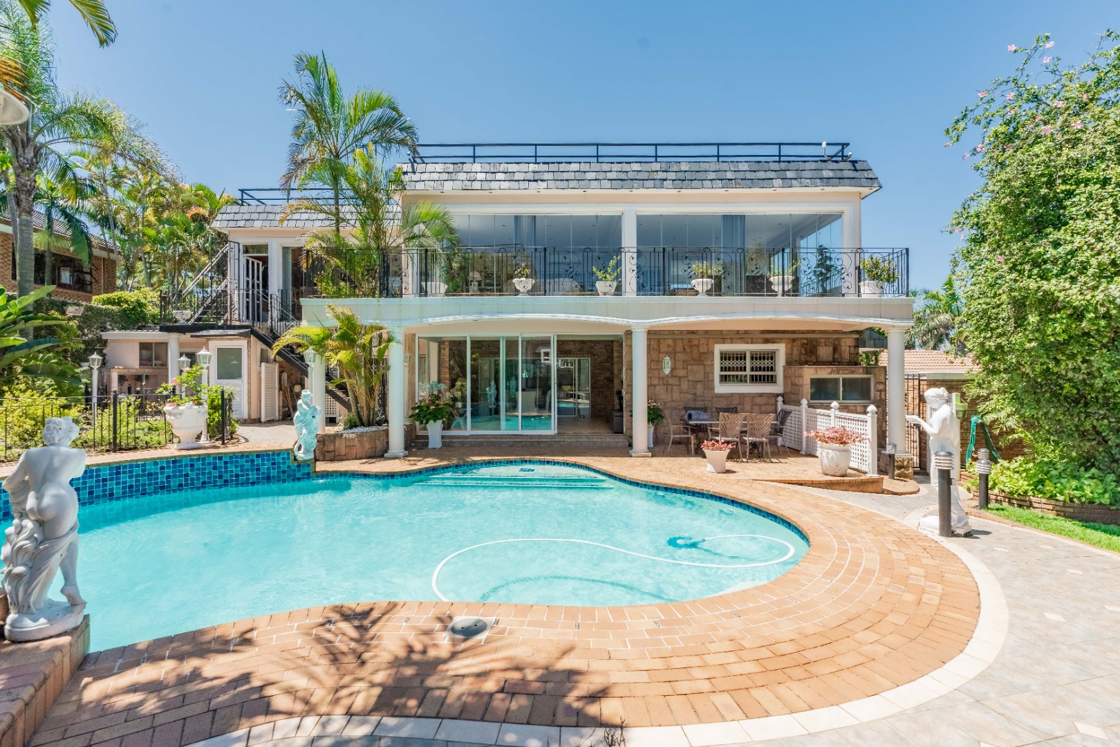 Set on an impressive 1365sqm of level land in prime Umhlanga Ridge, this magnificent and exceptionally rare property offers an elegant lifestyle of space, privacy and versatility.