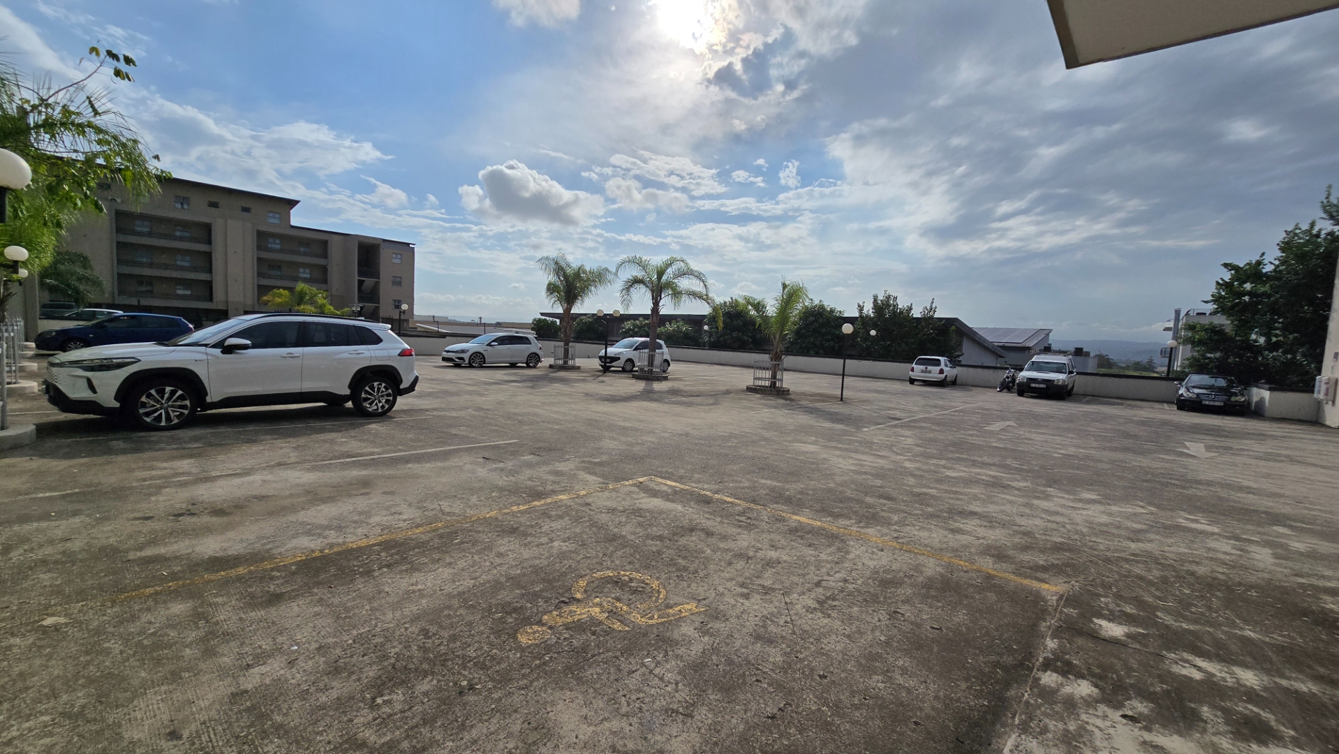 Step outside the lounge to a private, tiled balcony, offering an outdoor retreat with views of the surrounding modern buildings and some greenery. This space provides natural light to the interior and is perfect for relaxation. The property also includes two dedicated underground parking bays, adding to its practicality.