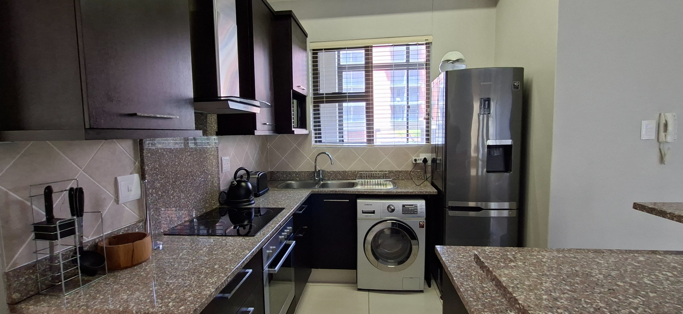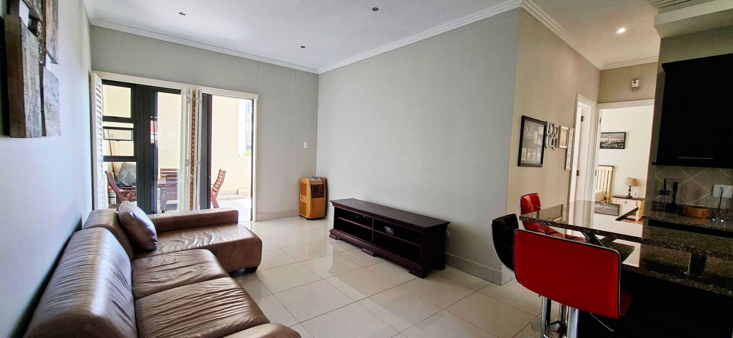The spacious main bedroom features a private en-suite and opens onto its own patio, creating a peaceful retreat to start and end your day. The modern open-plan kitchen, finished with sleek granite countertops, flows seamlessly into the lounge, where sliding doors lead out to a generous patio — the ideal space to relax, entertain, and soak in the stunning ocean views.
