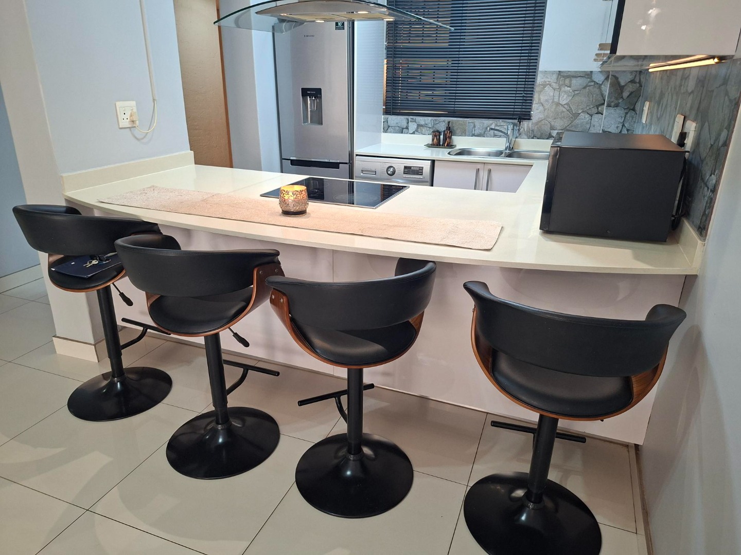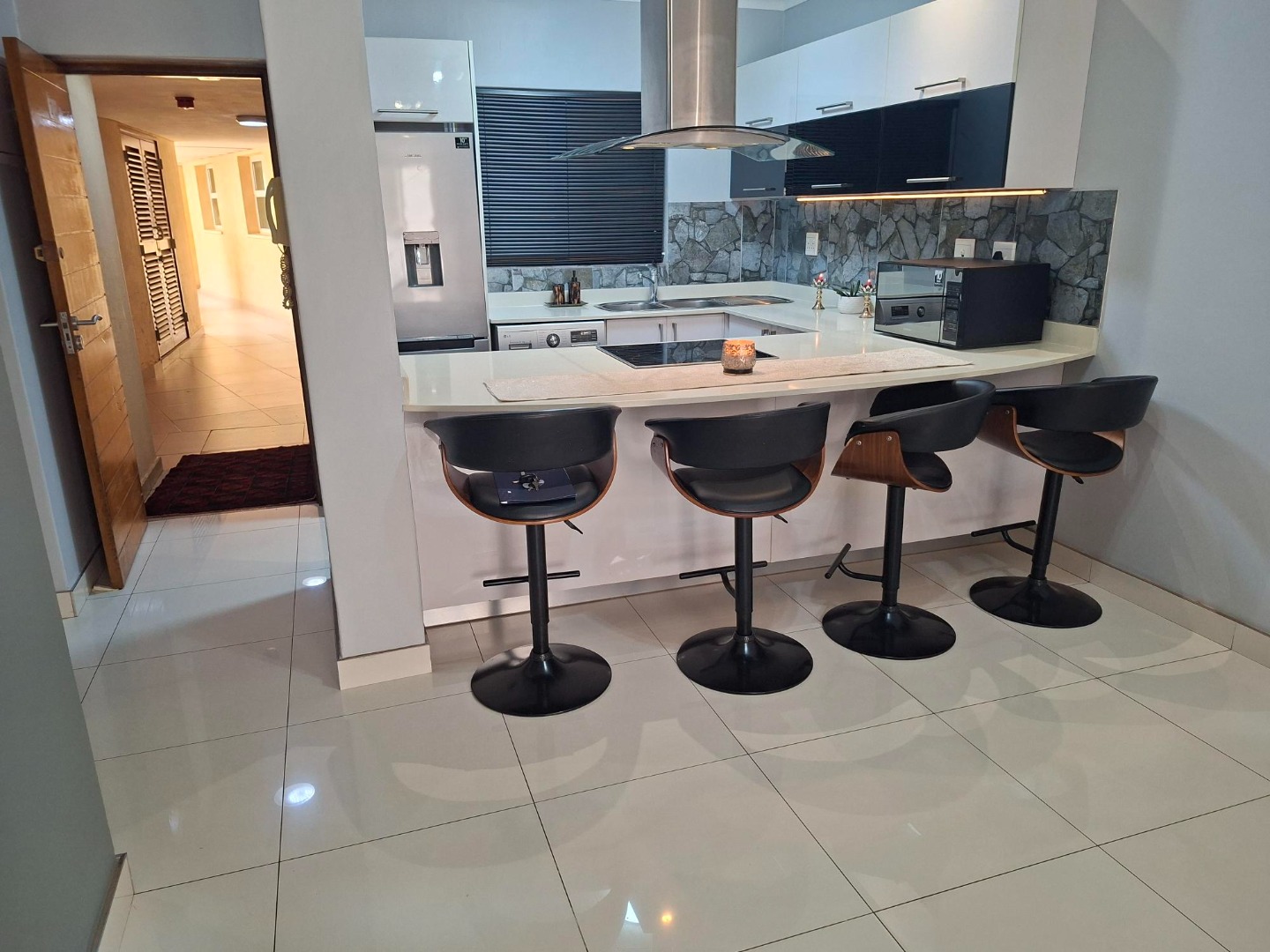 A beautiful spacious apartment fully renovated with top fixtures and fittings and an eye catching kitchen. The unit offers 2 large bathrooms, one of which is en-suite. Open plan living with a lovely secluded patio. There are 2 parking bays and a storeroom plus 24hr security. The seller is willing to sell with the furniture included at an additional cost. It is situated close to the Gateway mall and all amenities.