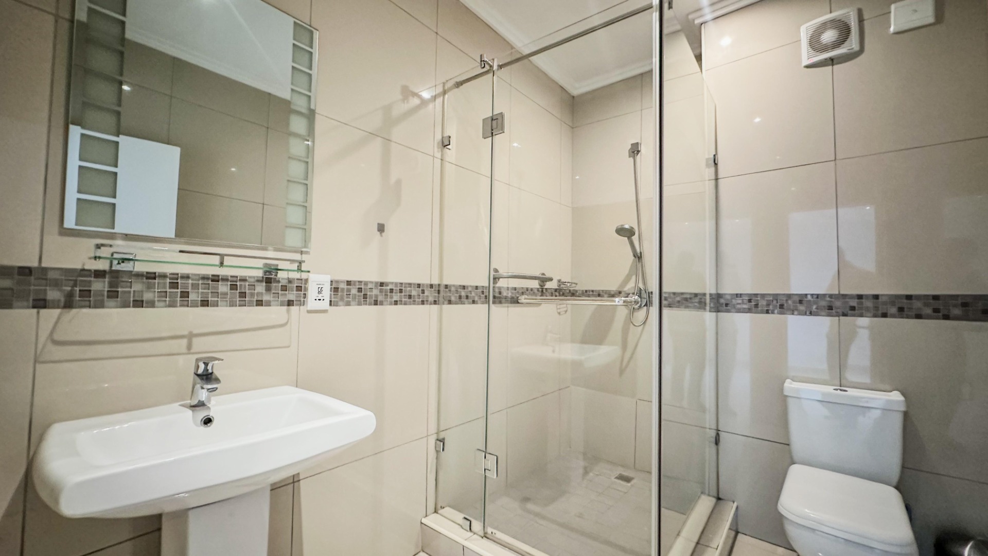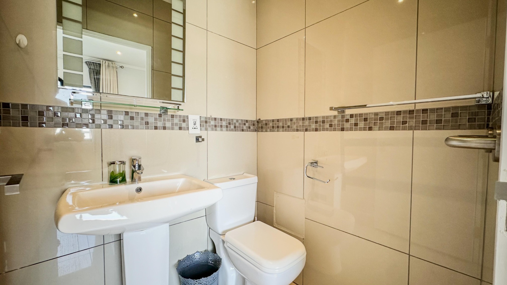 Residents will appreciate the practical amenities, including a secure garage and an additional parking space. The complex prioritises safety with 24-hour security, an access gate, security post, alarm system, and intercom, ensuring peace of mind. Furthermore, the property is wheelchair friendly, enhancing accessibility for all. A notable feature is the private balcony, offering an ideal spot for relaxation.