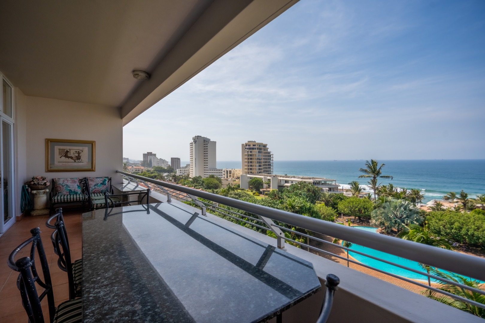 Step outside to discover an array of exceptional outdoor and lifestyle amenities. Multiple private balconies and patios offer breathtaking panoramic sea views, perfect for al fresco dining or simply soaking in the coastal splendour. The expansive resort-style swimming pool, set amidst tropical gardens, invites relaxation, while a well-equipped gym caters to your wellness needs. Two dedicated parking bays and two garages provide ample secure accommodation for vehicles.