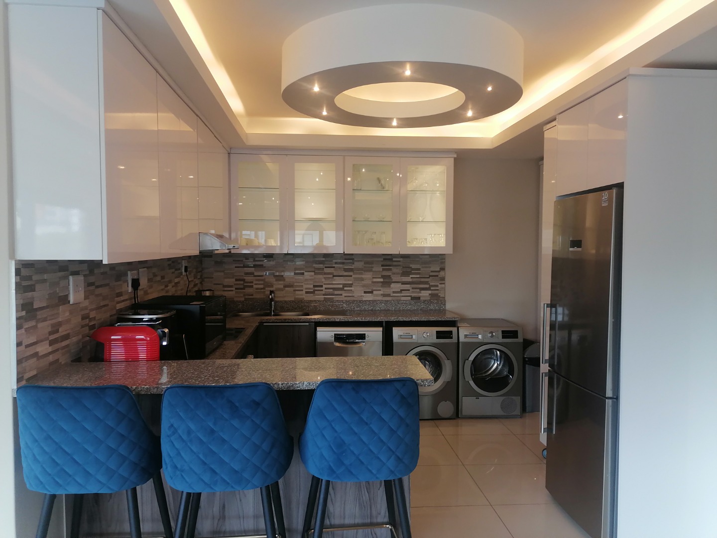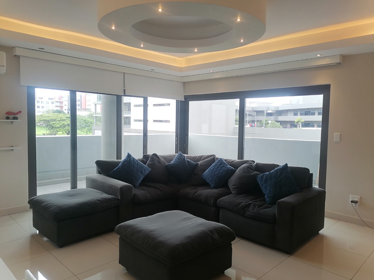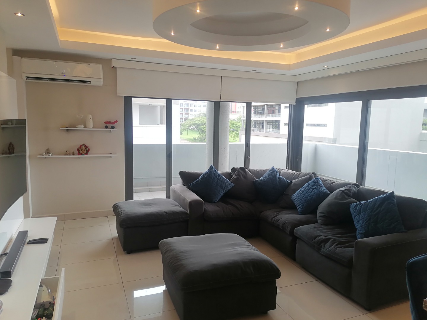 Twilight is one of the newer developments in the Umhlanga Ridge area. The complex offers secure upmarket living in the popular secure estates community. The fully tiled apartment comprises three bedrooms, three bathrooms, an open plan living area and kitchen. The open plan living area spans the length of the apartment and provides space for both lounge and dining suites and integrates the modern kitchen which is fitted with built in cupboards and granite tops. Sliding doors in the living area open onto the covered patio area. Built in cupboards are present in all of the bedrooms, the master bedroom opens onto its own ensuite bathroom, the second is a shared family bathroom, both complete with a modern fittings and san-ware. The apartment has been enhanced with additional features, unique to this unit. The huge wrap-around balcony is a beautiful space that compliments this spacious, airy apartment. Two secure basement parking bays are available with the apartment. The development is secure, modern and upmarket, within close proximity of all amenities.