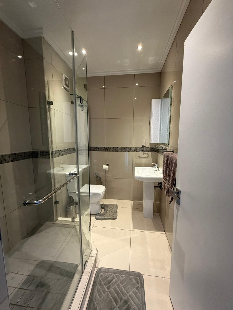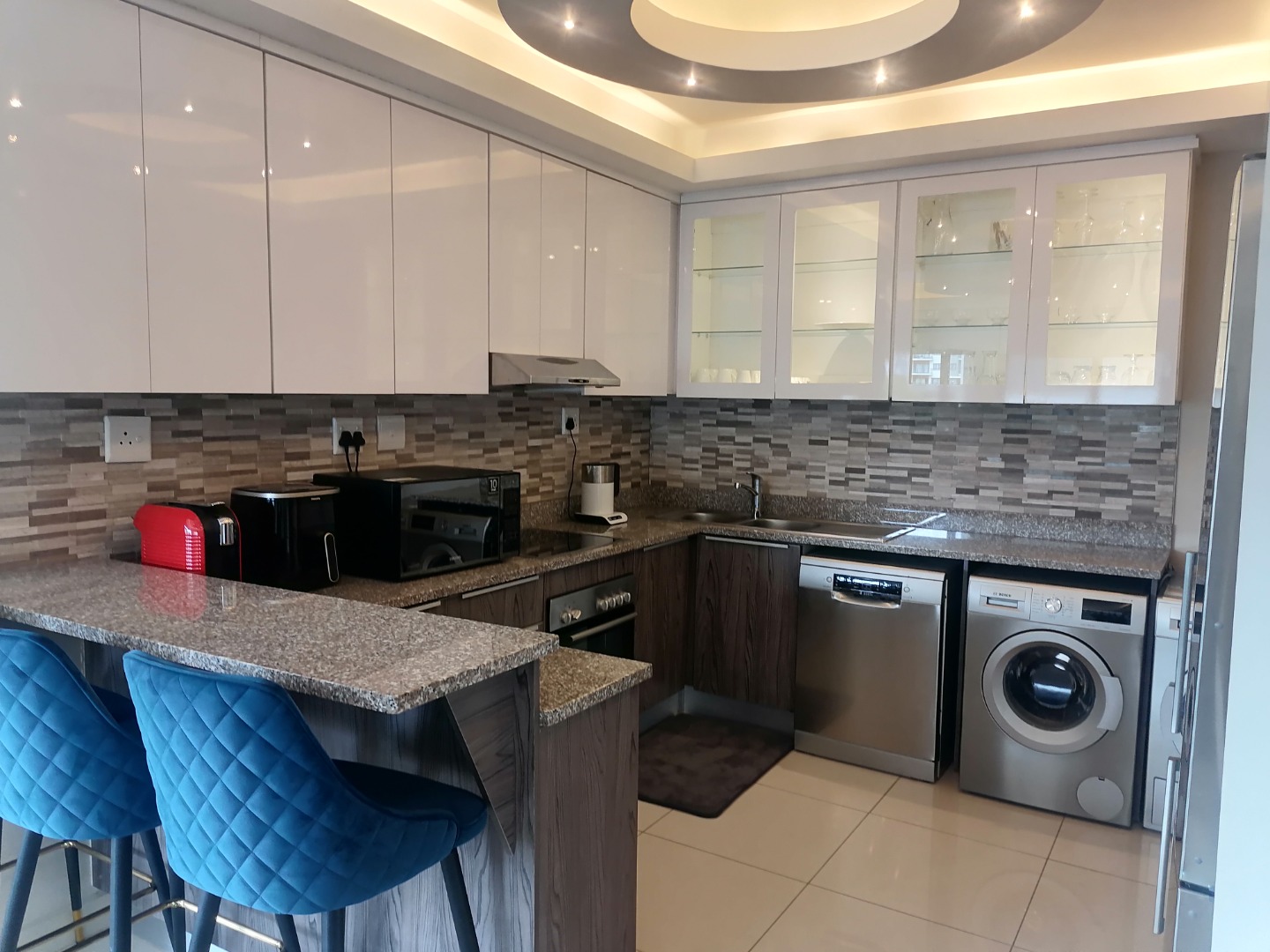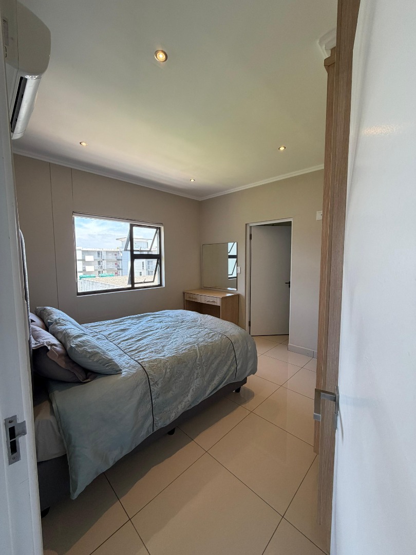 Twilight is one of the newer developments in the Umhlanga Ridge area. The complex offers secure upmarket living in the popular secure estates community. The fully tiled apartment comprises three bedrooms, three bathrooms, an open plan living area and kitchen. The open plan living area spans the length of the apartment and provides space for both lounge and dining suites and integrates the modern kitchen which is fitted with built in cupboards and granite tops. Sliding doors in the living area open onto the covered patio area. Built in cupboards are present in all of the bedrooms, the master bedroom opens onto its own ensuite bathroom, the second is a shared family bathroom, both complete with a modern fittings and san-ware. The apartment has been enhanced with additional features, unique to this unit. The huge wrap-around balcony is a beautiful space that compliments this spacious, airy apartment. Two secure basement parking bays are available with the apartment. The development is secure, modern and upmarket, within close proximity of all amenities.