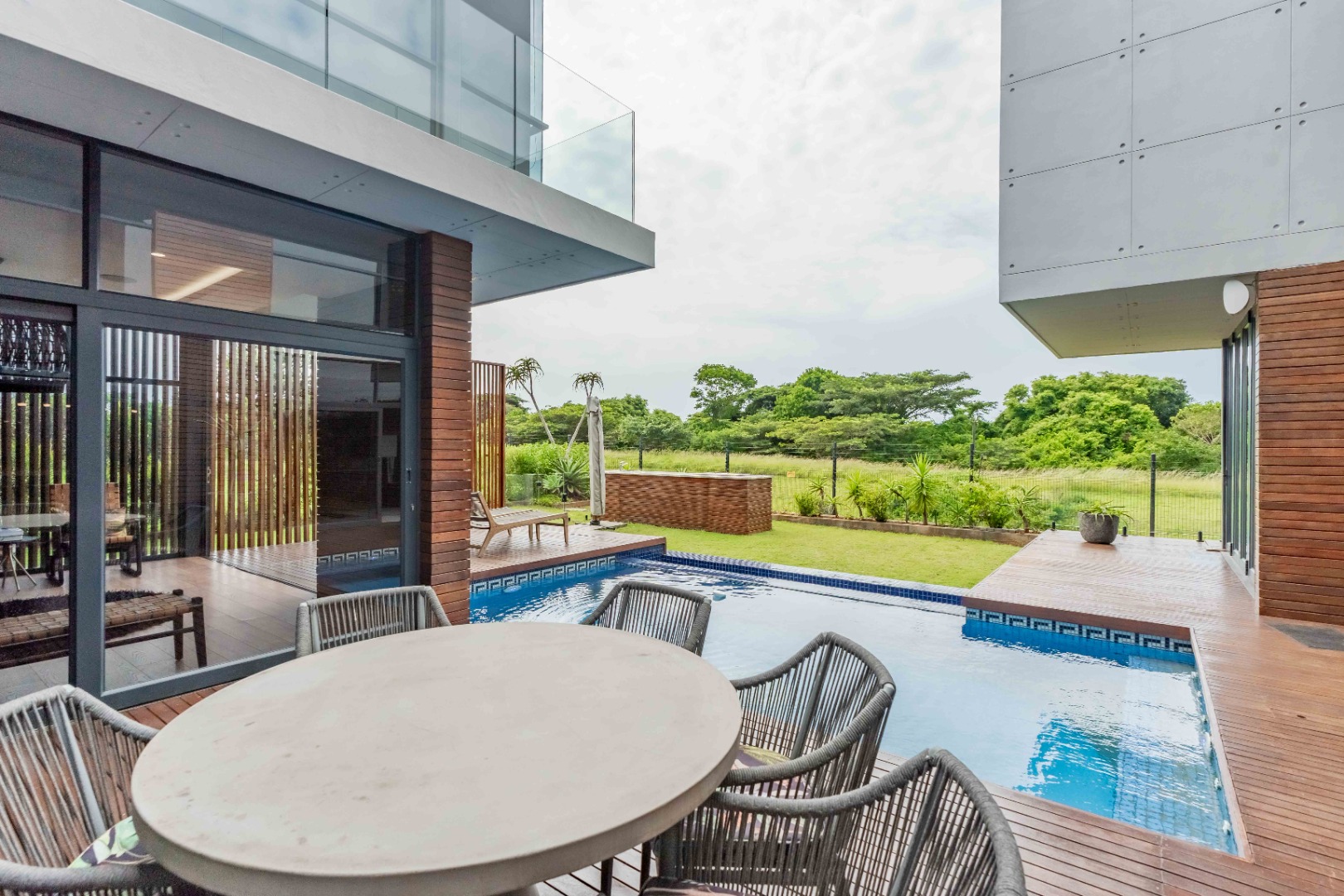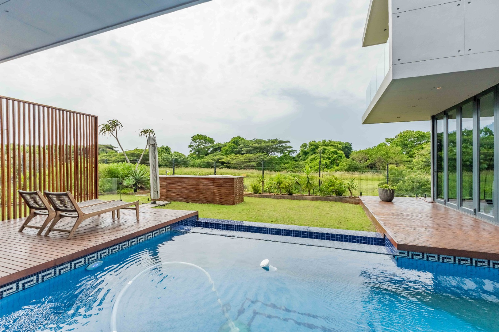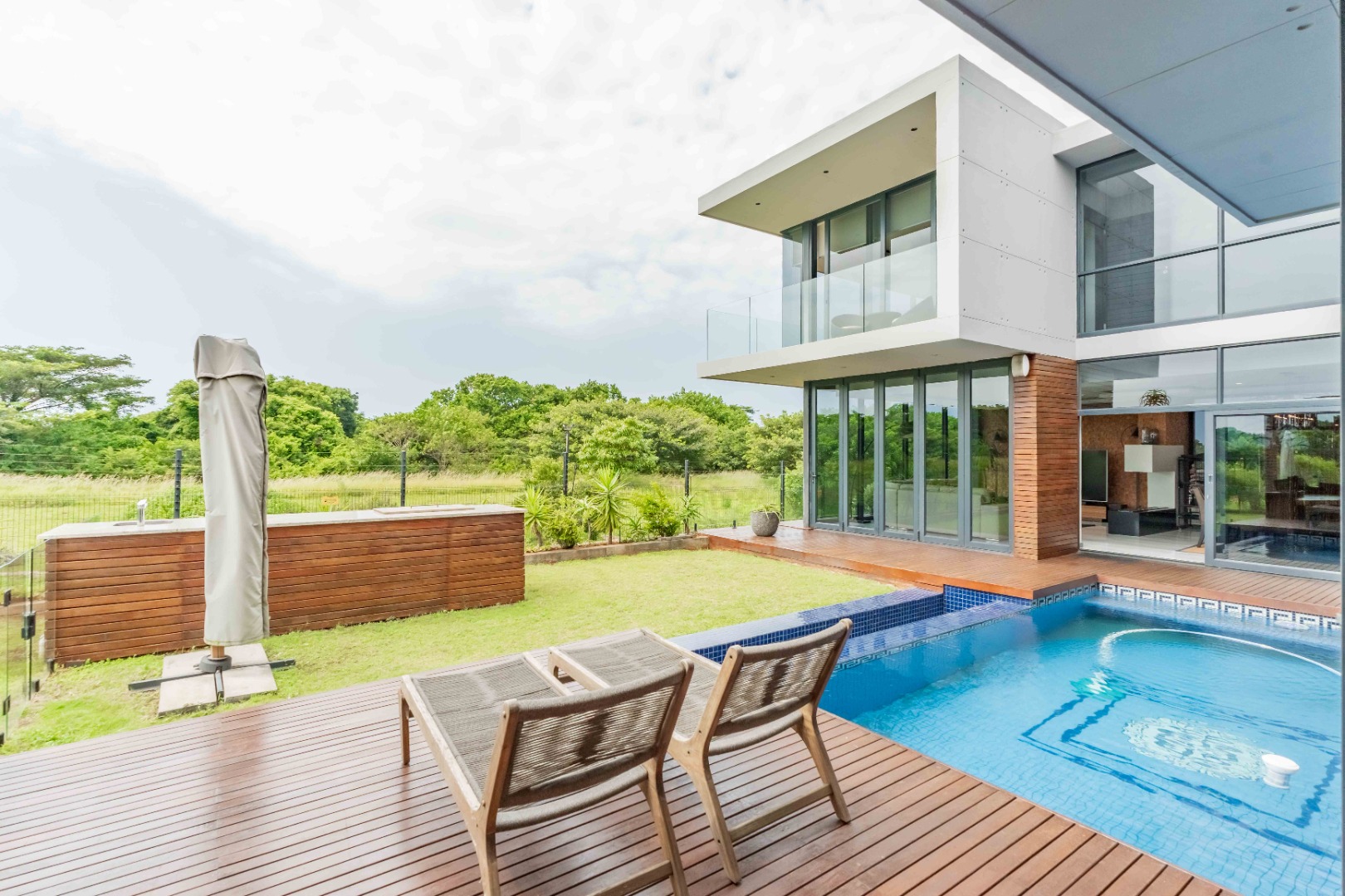 Nestled within the exclusive and secure Ridgeside residential estate, this exceptional free standing home offers the perfect blend of luxury, privacy and modern convenience in one of Umhlanga Ridge's most sought after addresses. Designed for contemporary living the home boasts spacious open plan interiors with seamless flow between the living, dining and entertainment areas. Large windows and sliding doors allow for natural light, outdoor connection, to private pool and garden. A well appointed kitchen features high end finishes and quality appliances making it both stylish and functional. Additional features include private club house and gym, secure double garage with direct access, 24hr security within a gated estate. Close proximity to Umhlanga's beaches, top schools, Gateway and a rare opportunity to own a sophisticated house in one of Umhlanga premiere estate.