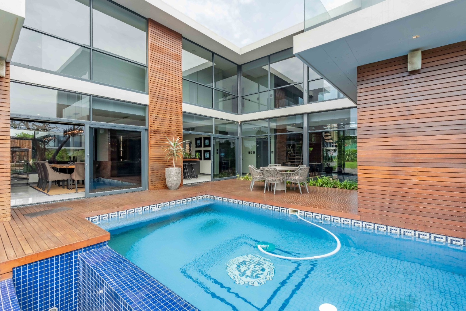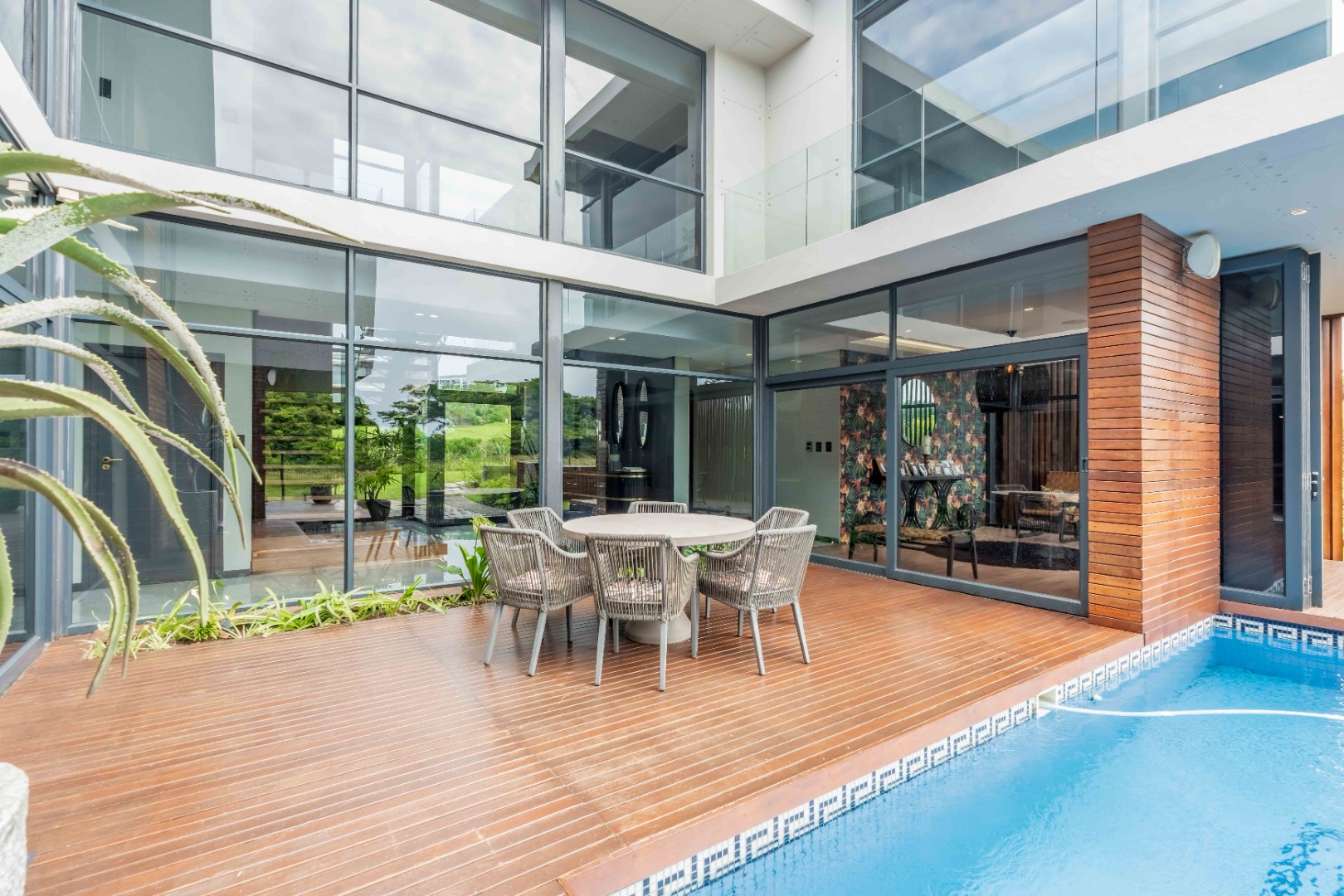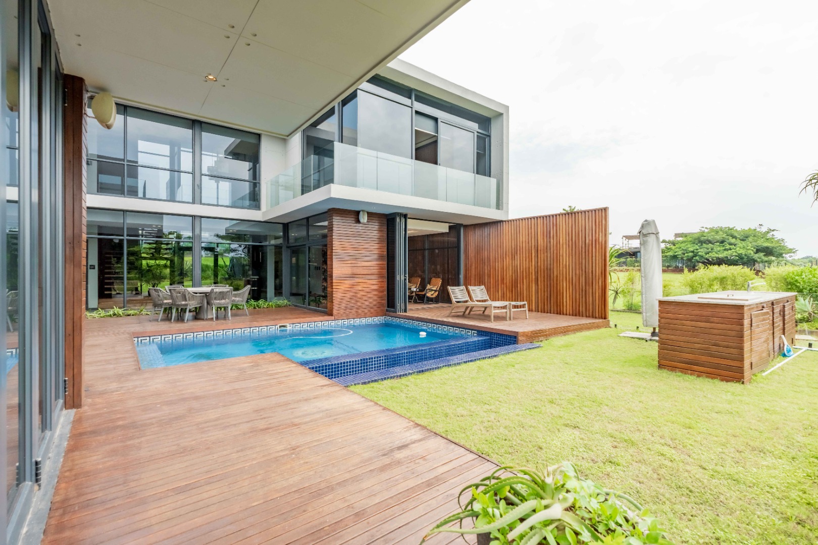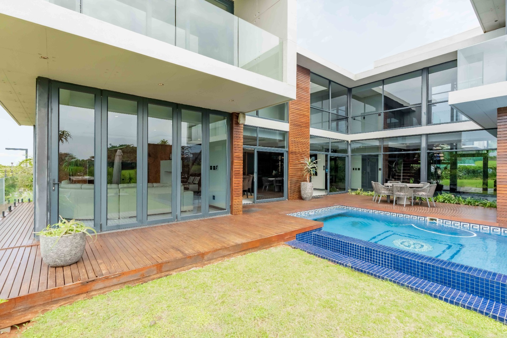 Nestled within the exclusive and secure Ridgeside residential estate, this exceptional free standing home offers the perfect blend of luxury, privacy and modern convenience in one of Umhlanga Ridge's most sought after addresses. Designed for contemporary living the home boasts spacious open plan interiors with seamless flow between the living, dining and entertainment areas. Large windows and sliding doors allow for natural light, outdoor connection, to private pool and garden. A well appointed kitchen features high end finishes and quality appliances making it both stylish and functional. Additional features include private club house and gym, secure double garage with direct access, 24hr security within a gated estate. Close proximity to Umhlanga's beaches, top schools, Gateway and a rare opportunity to own a sophisticated house in one of Umhlanga premiere estate.