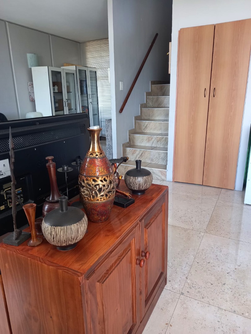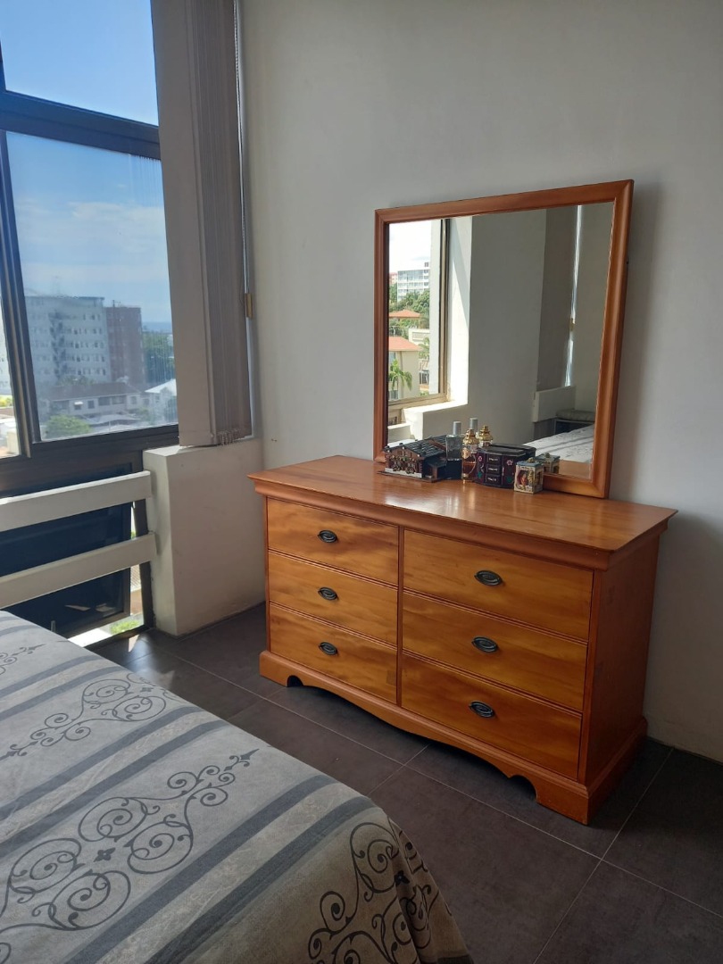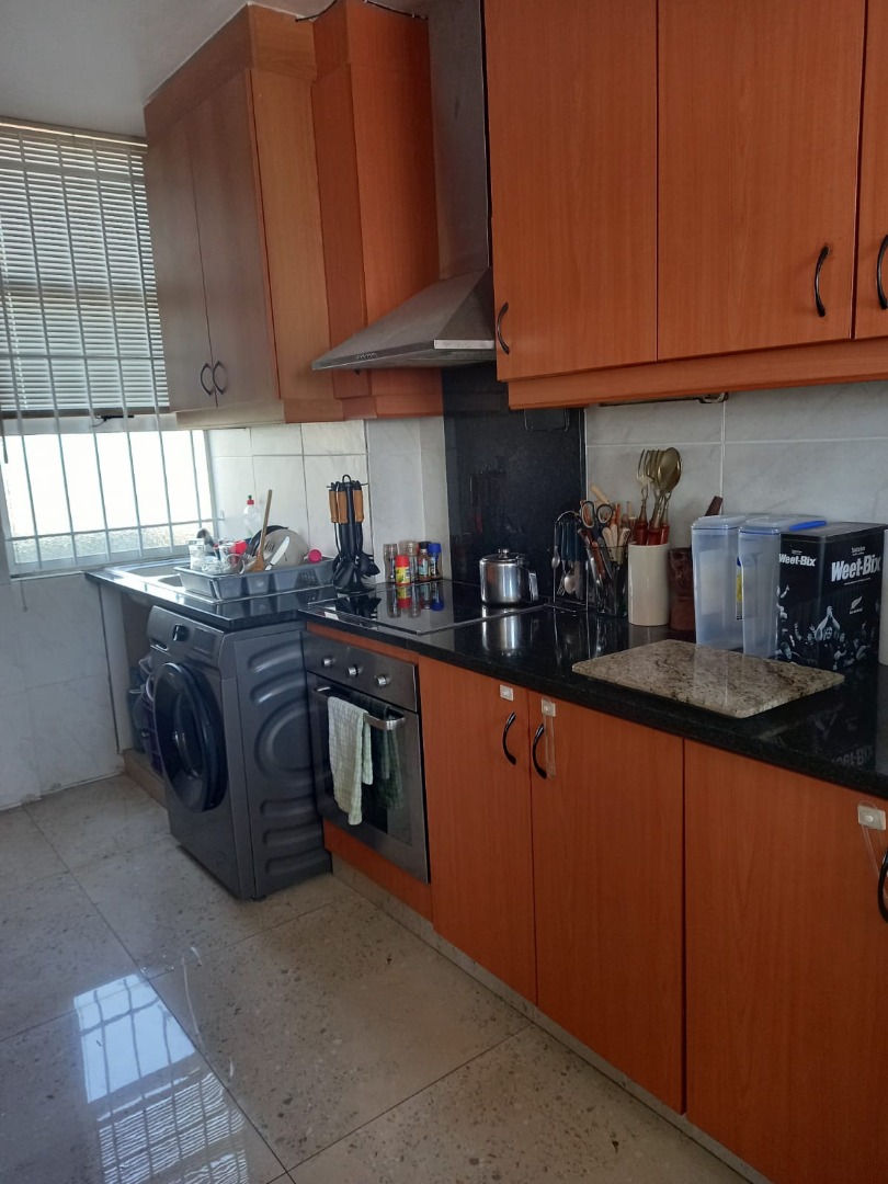 Discover this spacious and fully furnished 3-bedroom, 2-bathroom apartment available for rent in the desirable suburban area of Essenwood, Durban. This inviting residence features an open-plan lounge and dining room, creating a fluid living space perfect for relaxation and entertaining. The well-appointed kitchen boasts extensive light wood cabinetry, dark countertops, and a tiled backsplash, complemented by integrated appliances including a hob, oven, and extractor fan. Practical additions include a modern washing machine refrigeration unit, ensuring convenience for daily living. Tiled flooring throughout the main areas enhances the clean and functional aesthetic, while large windows invite ample natural light.