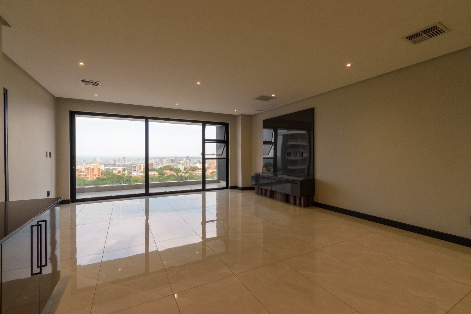 Discover this new, secure apartment in Durban's sought-after Essenwood, boasting excellent security and captivating views. It features an open-plan lounge and dining area, alongside a modern kitchen with a centre island and marble tops. An expansive open balcony, accessible from the lounge and two bedrooms, offers stunning city, sea, or harbour vistas. The apartment includes four bedrooms, with a main en-suite, plus a family bathroom. Enjoy ducted air conditioning, fibre readiness, and two undercover parking bays. The complex provides 24/7 security, lifts, backup power/water, a centre court, and diverse on-site eateries. Arrange your viewing today.