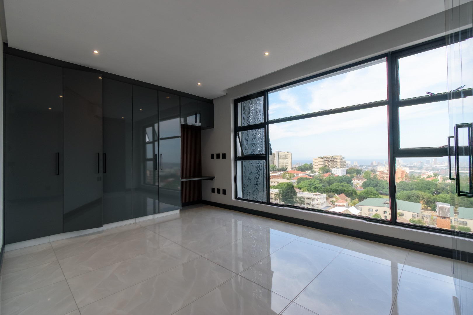 Discover this new, secure apartment in Durban's sought-after Essenwood, boasting excellent security and captivating views. It features an open-plan lounge and dining area, alongside a modern kitchen with a centre island and marble tops. An expansive open balcony, accessible from the lounge and two bedrooms, offers stunning city, sea, or harbour vistas. The apartment includes four bedrooms, with a main en-suite, plus a family bathroom. Enjoy ducted air conditioning, fibre readiness, and two undercover parking bays. The complex provides 24/7 security, lifts, backup power/water, a centre court, and diverse on-site eateries. Arrange your viewing today.