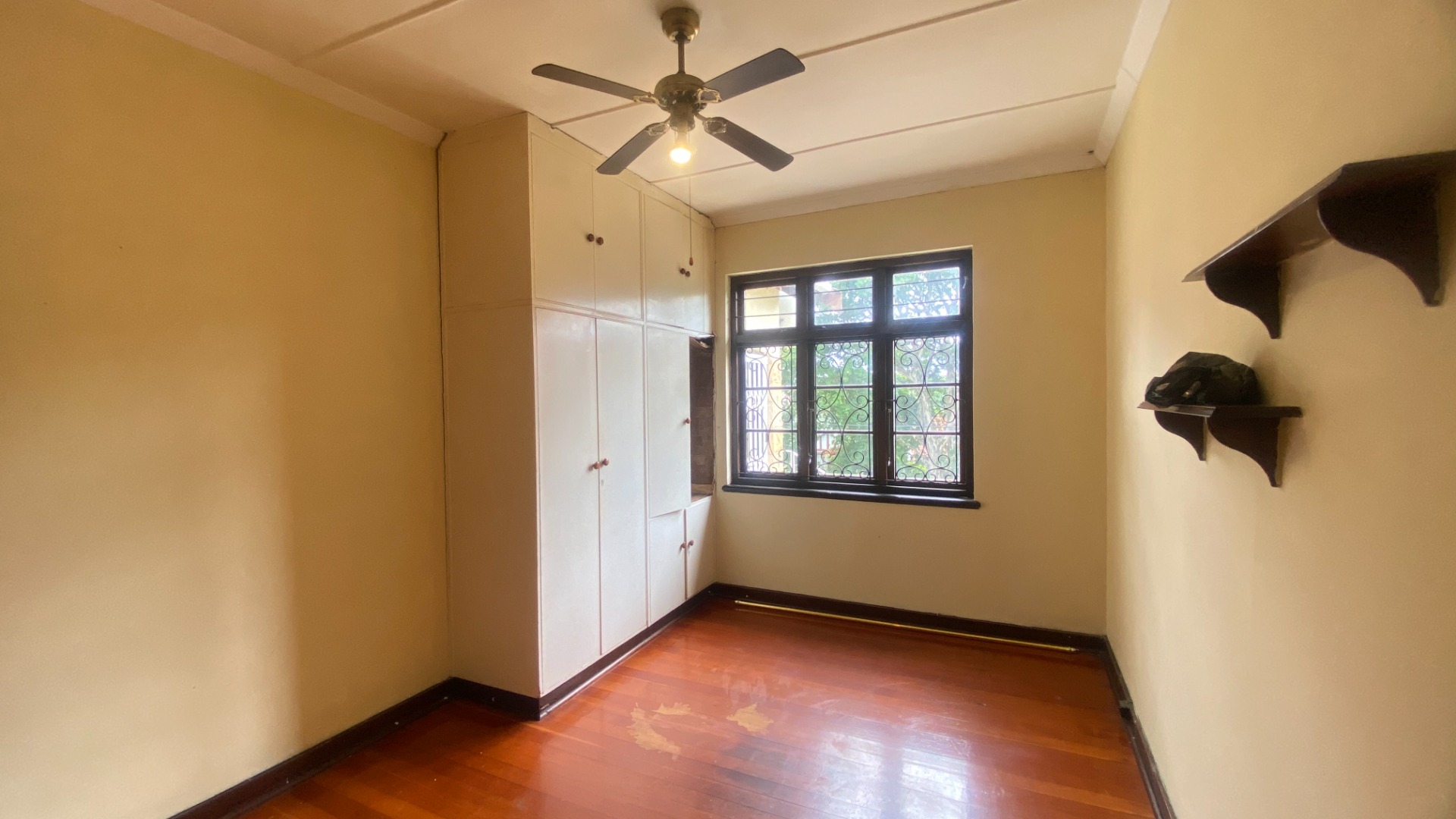 Additional features include two roll-up garages, providing secure parking and extra storage. The property is shared with three bachelor flats located at the rear of the yard, ensuring separation between the main house and the additional units.