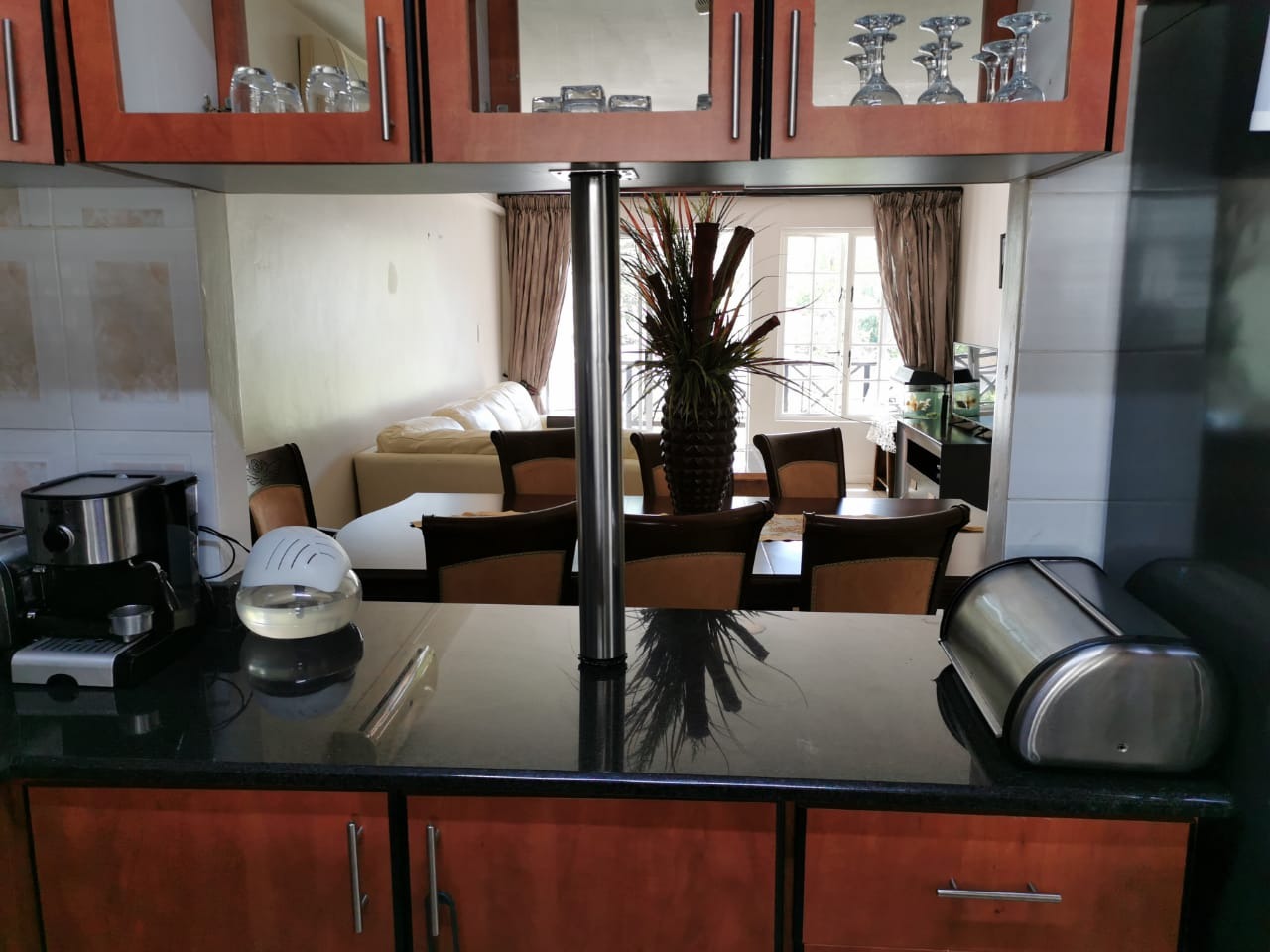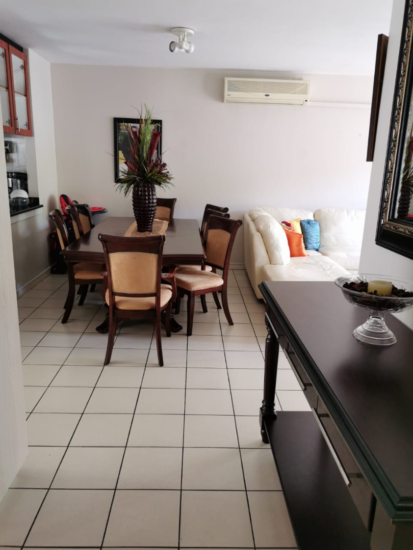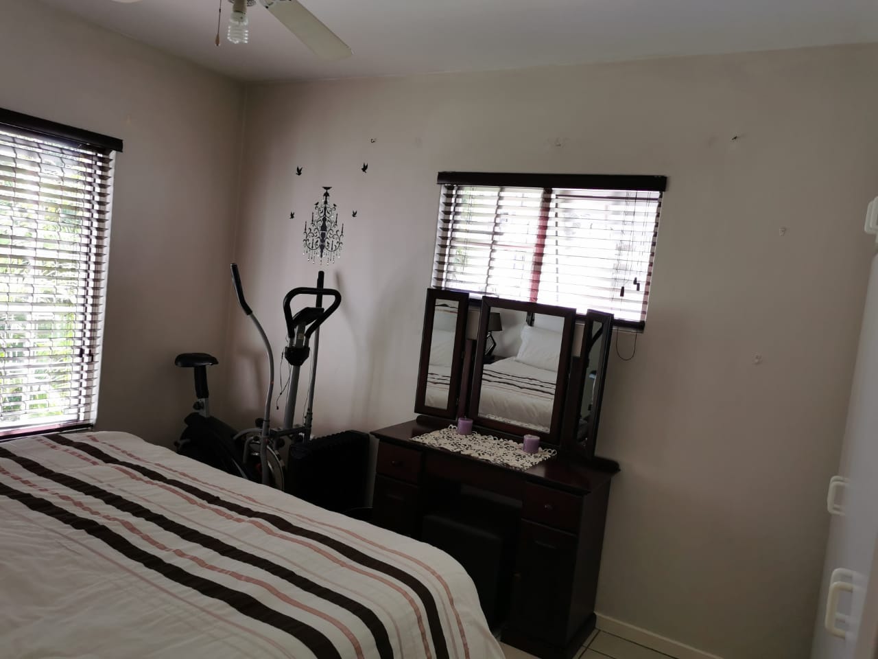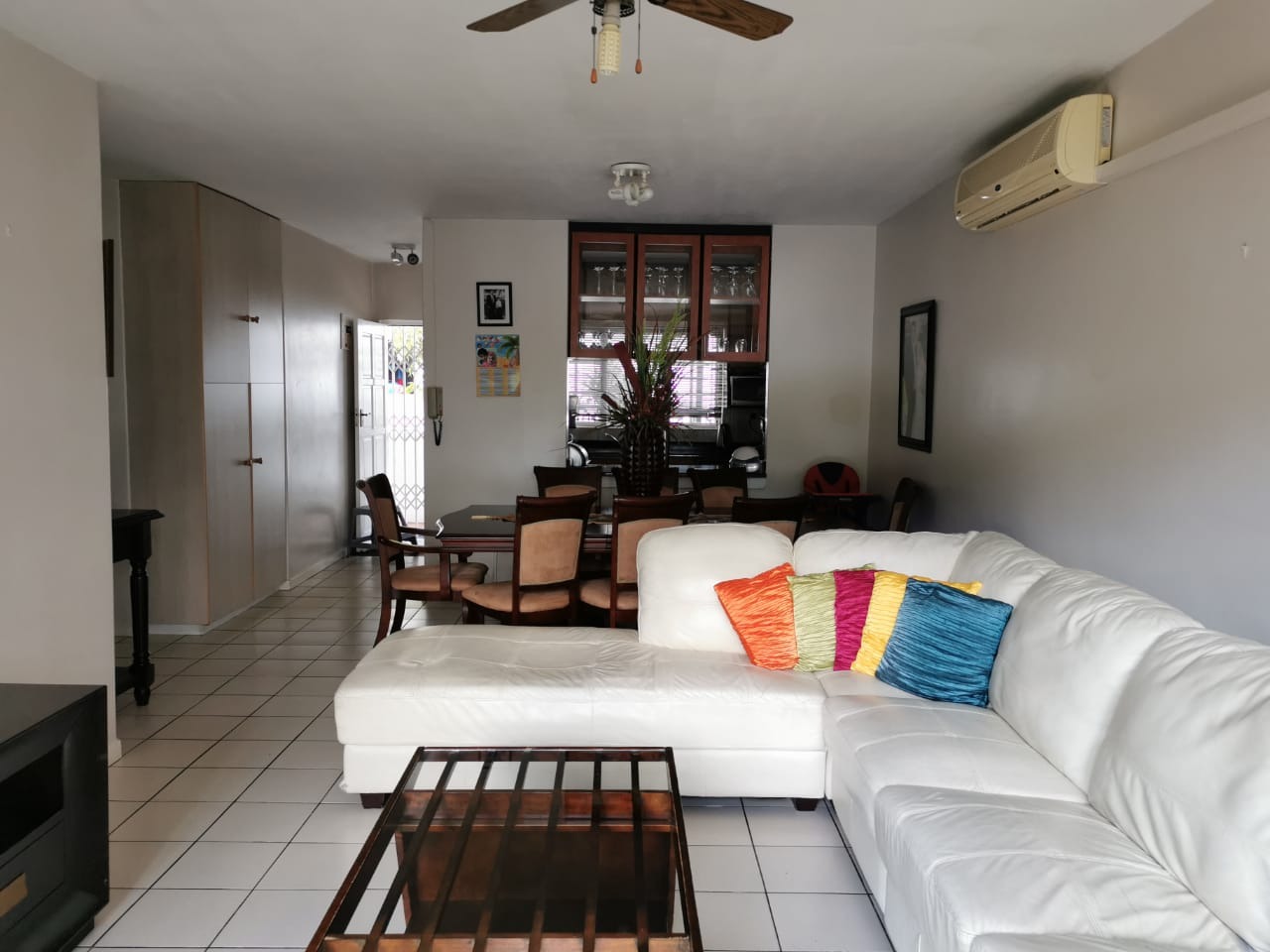 Discover this inviting 95 sqm apartment in a secure Manor Gardens complex, offering three bedrooms and two bathrooms, including one ensuite. The open-plan lounge and dining area feature durable tiled flooring, air conditioning, and a ceiling fan for comfort. The well-appointed kitchen includes modern countertops, ample storage, a built-in oven, and space for a washing machine and refrigerator.