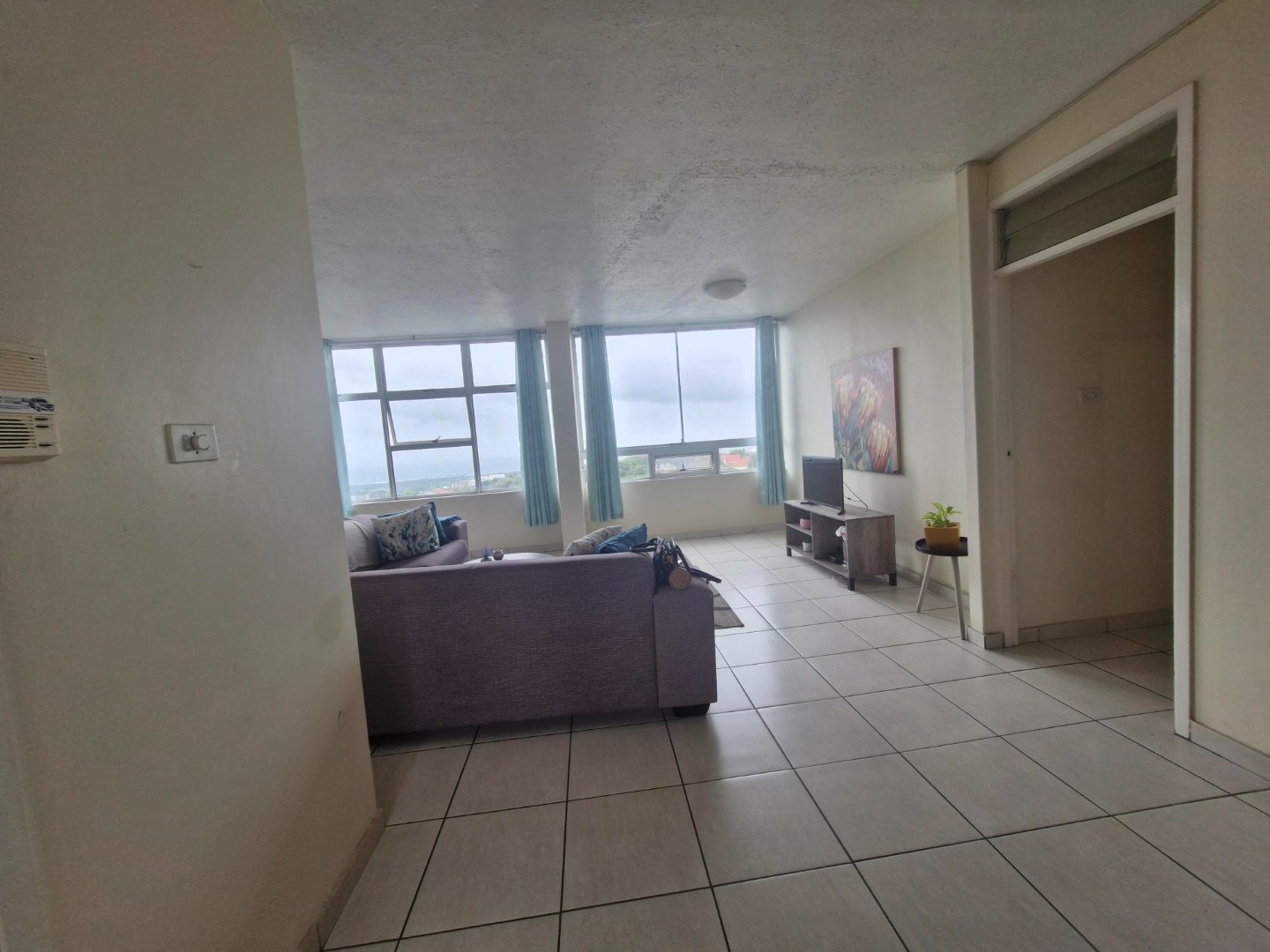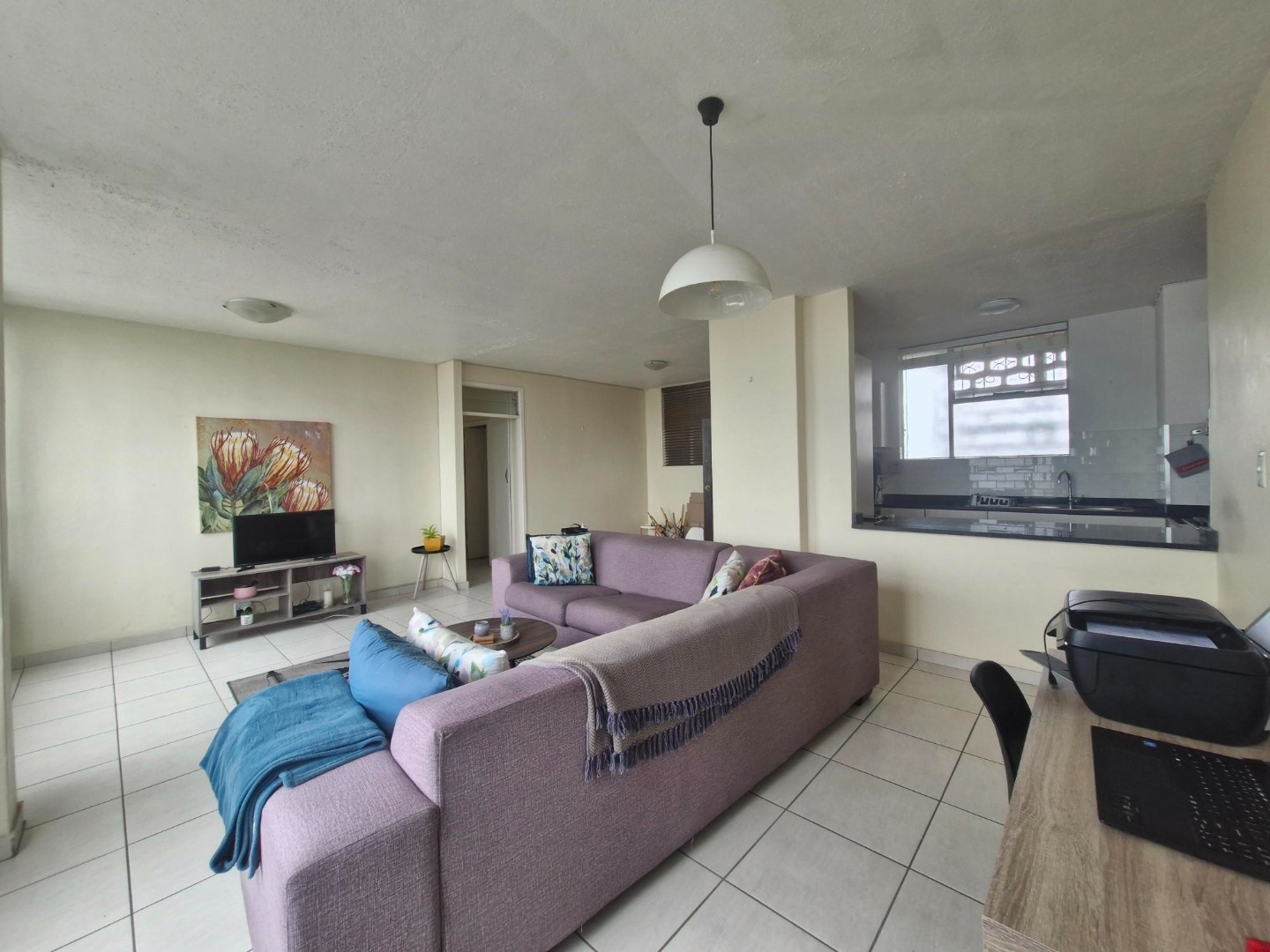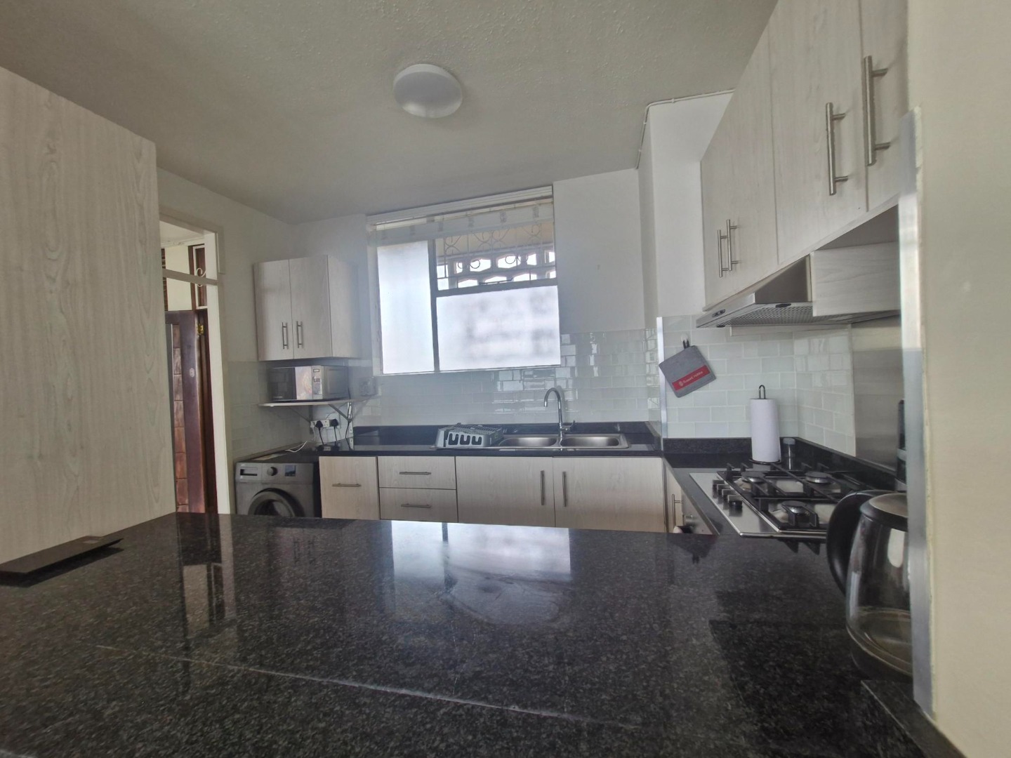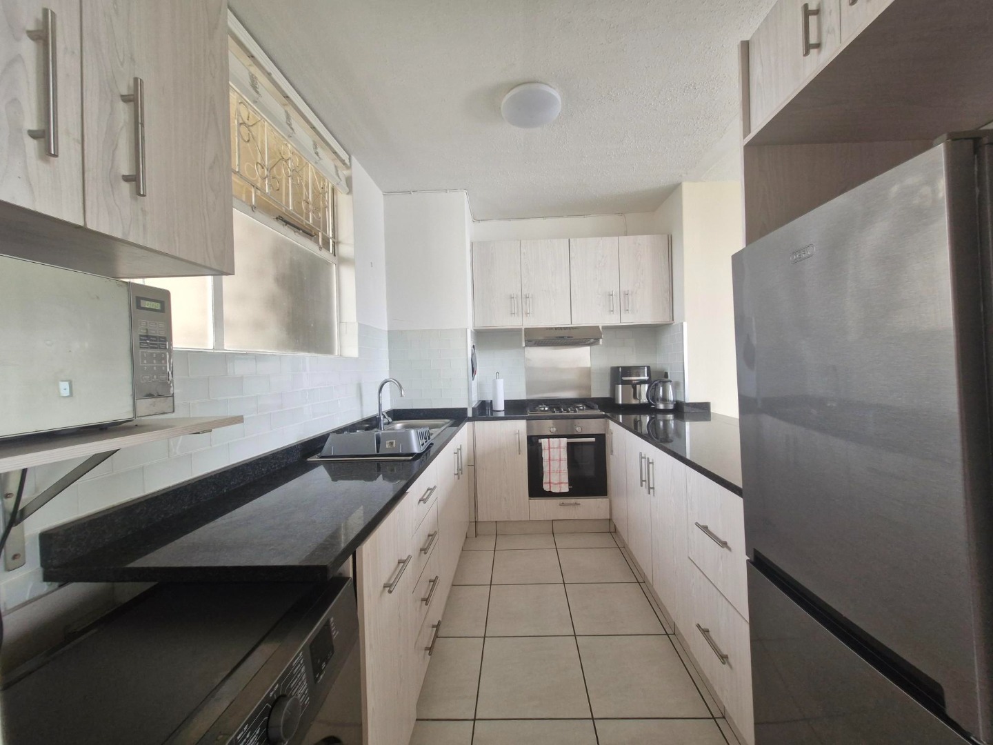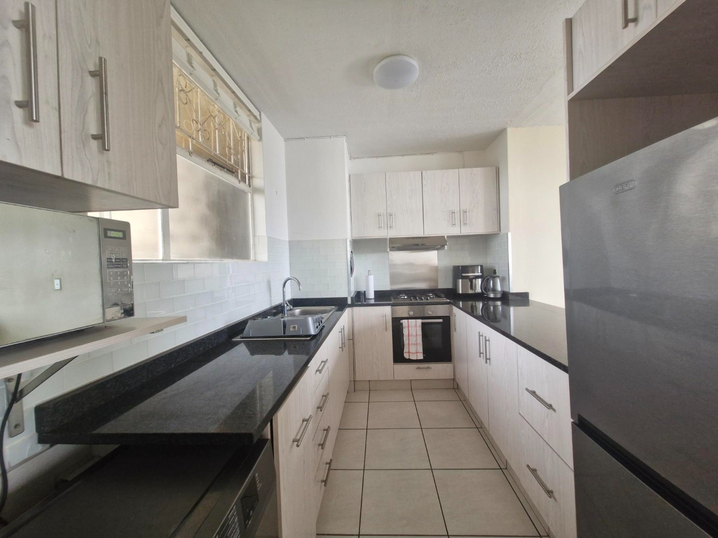 Inside, you'll find a beautiful, fully fitted kitchen boasting granite countertops and a gas hob. The open-plan lounge and dining area is light, airy, and maximizes the stunning views. The unit offers two very spacious bedrooms with ample built-in cupboards and two full bathrooms for ultimate convenience. A lock-up garage and 24-hour security guard complete this desirable picture.