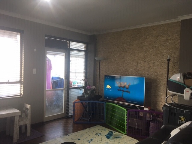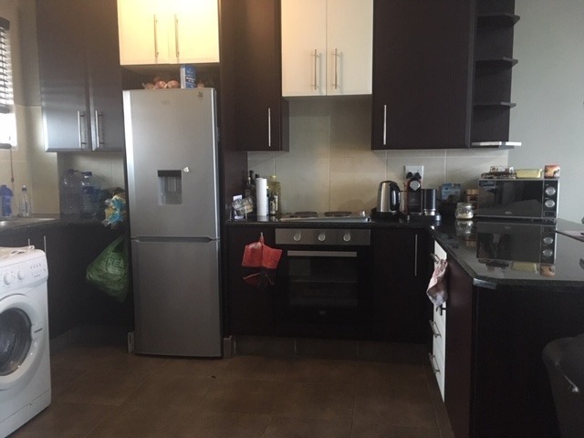 The fully fitted open-plan kitchen flows into the bright lounge, leading out to a cozy enclosed balcony. Two bedrooms with built-in cupboards and a full bathroom provide comfort and convenience.