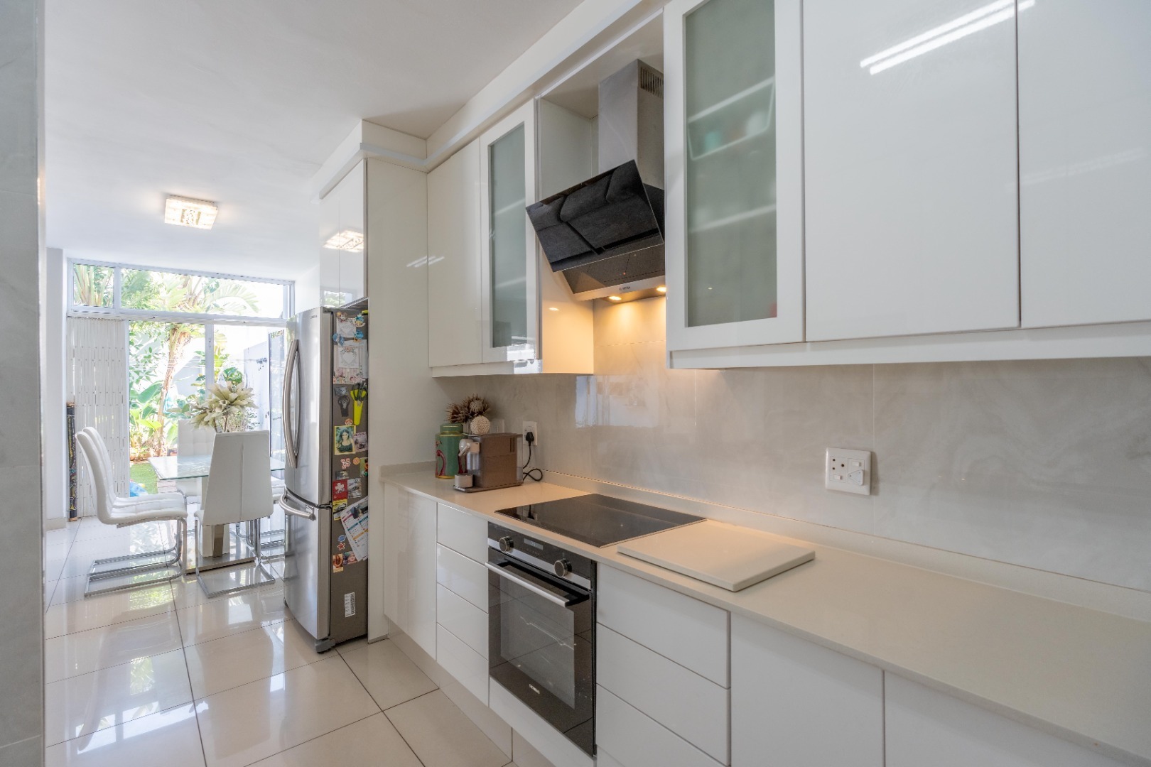 We are pleased to present this stunning home in Musgrave, featuring exquisite finishes and extra amenities. This property boasts 2 bedrooms and 2.5 bathrooms, along with a delightful garden covered with vibrant astroturf, providing a quaint outdoor spot for relaxation and entertainment. An expansive open-plan living area seamlessly blends the kitchen, dining area, and lounge. Stunning kitchen with Caesarstone countertops, touch-close cabinets, an oven, hob and extractor fan, with plumbing for both a washing machine and dishwasher. Convenient guest toilet.