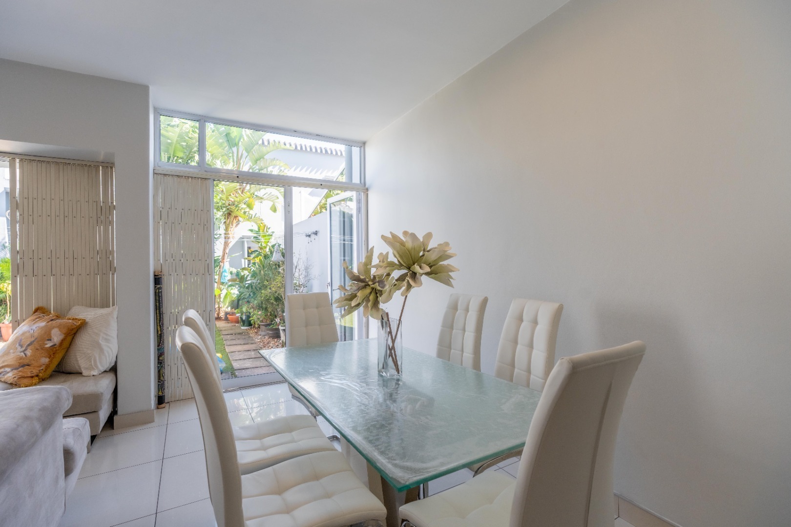 We are pleased to present this stunning home in Musgrave, featuring exquisite finishes and extra amenities. This property boasts 2 bedrooms and 2.5 bathrooms, along with a delightful garden covered with vibrant astroturf, providing a quaint outdoor spot for relaxation and entertainment. An expansive open-plan living area seamlessly blends the kitchen, dining area, and lounge. Stunning kitchen with Caesarstone countertops, touch-close cabinets, an oven, hob and extractor fan, with plumbing for both a washing machine and dishwasher. Convenient guest toilet.