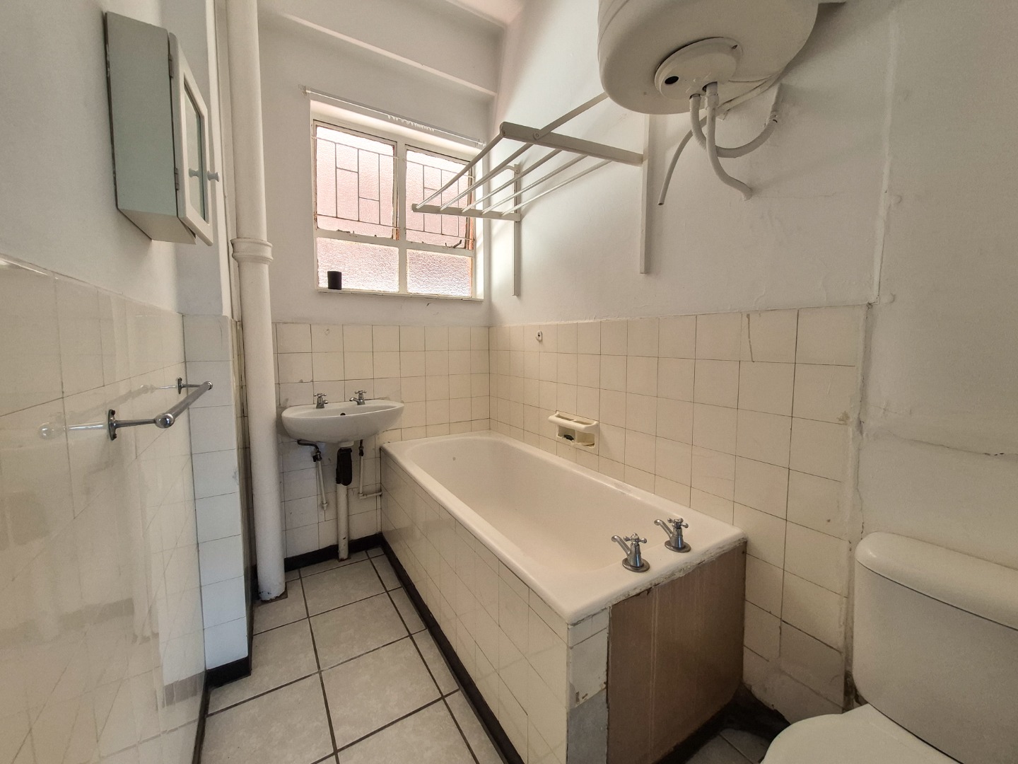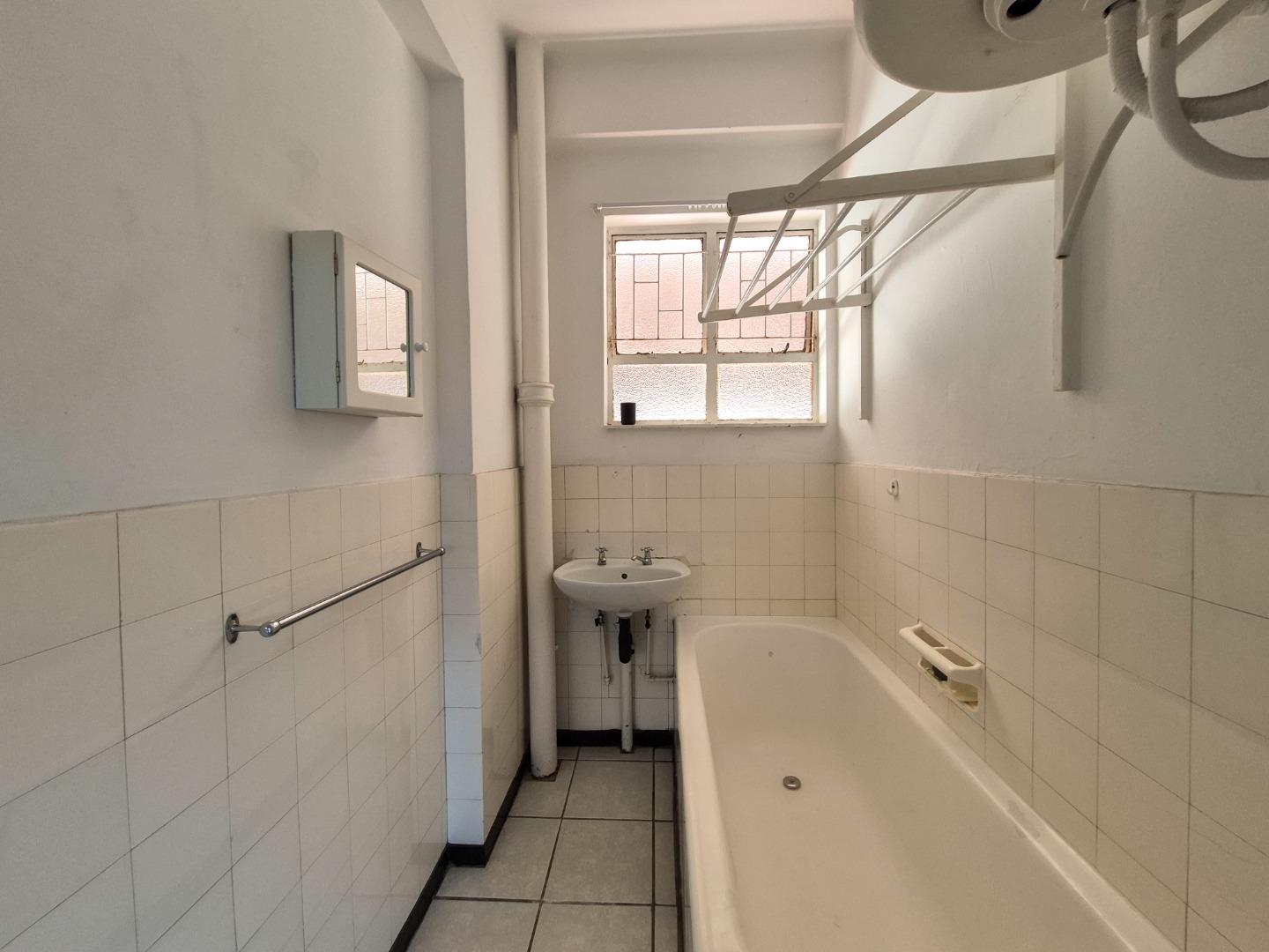 Lovely bachelor unit in a sought-after, front-line North Beach building. No parking. The unit offers a tiled bathroom with bath, basin and toilet, as well as a fold-out washing line. The kitchen is neat and well maintained, and the bright, airy open-plan bedroom/living area features built-in cupboards.