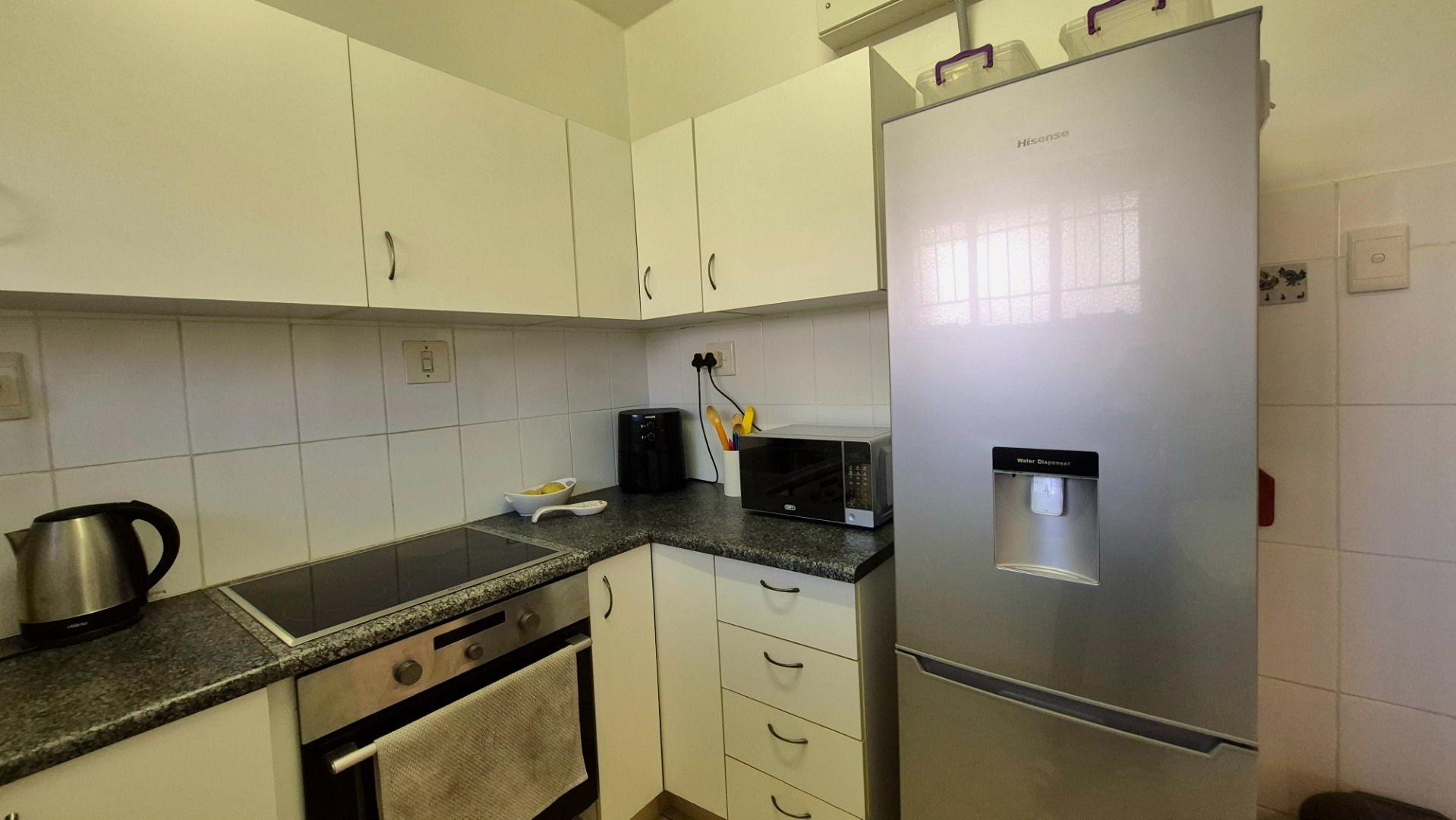 This spacious and versatile 1.5-bedroom apartment is available to rent in a sought-after, well-maintained building. The apartment features an entrance hall that flows through to the kitchen, lounge, bathroom, and bedroom, creating a practical and easy-living layout. The main bedroom is generously sized, carpeted, and fitted with a ceiling fan for added comfort. The half-bedroom offers flexible use as a home office, child’s room, or additional living space, making the apartment ideal for professionals working from home or a small family. The lounge and dining area is spacious, providing ample room to relax or entertain. Carpeting in the lounge and bedroom add warmth, while tiled flooring in the entrance, kitchen, and bathroom allows for easy maintenance. The fitted kitchen is neat and functional, with good cupboard space, and the bathroom includes a bath, basin, and toilet. Ceiling fans in the lounge, bedroom, and half-room help keep the apartment cool and comfortable throughout the year.