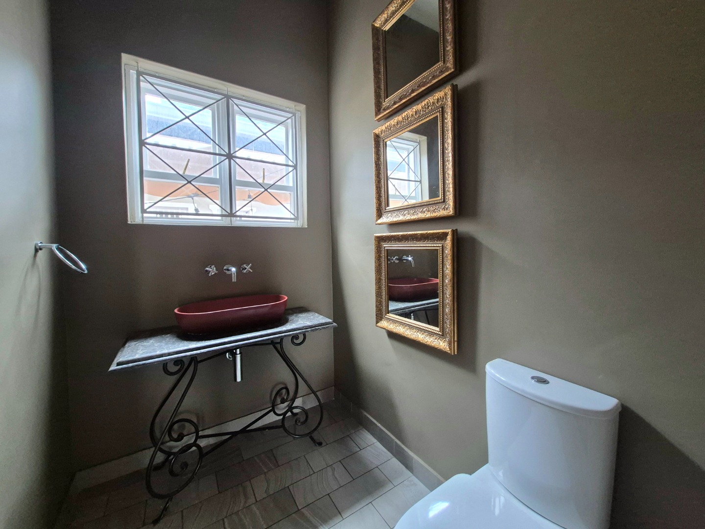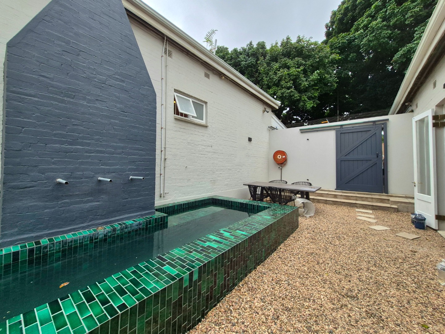 Externally, the property presents a distinctive facade with a paved front area, offering practical access. Security is enhanced by electric fencing, burglar bars and a gated porch, providing peace of mind. A unique amenity for a commercial space is the modern water feature, set within a private courtyard – an unexpected bonus for staff relaxation or informal client meetings.
