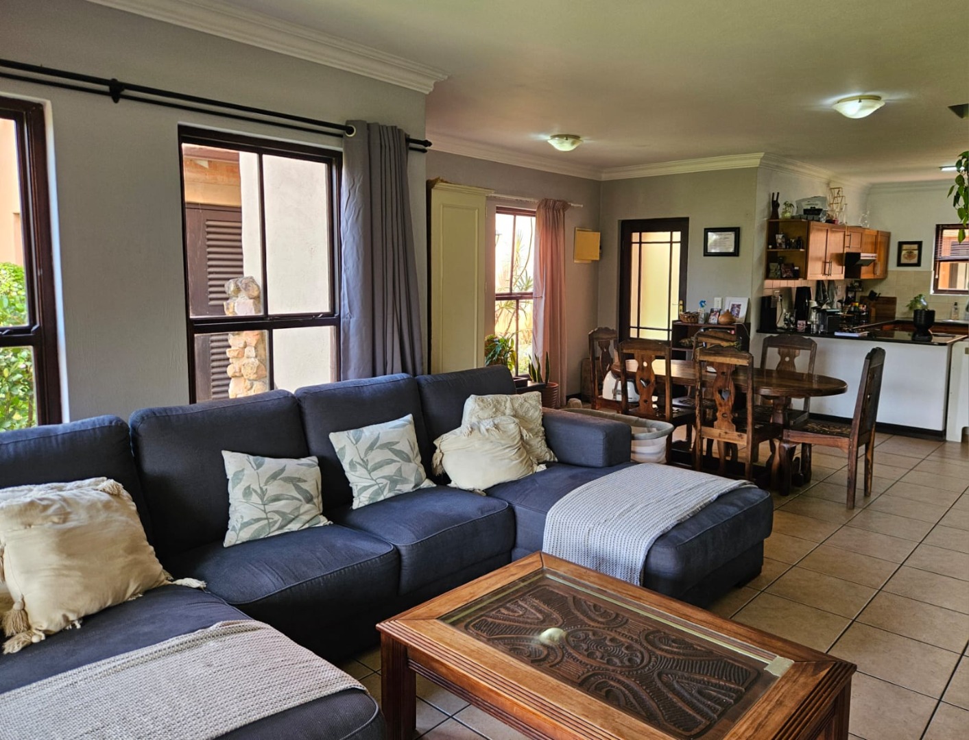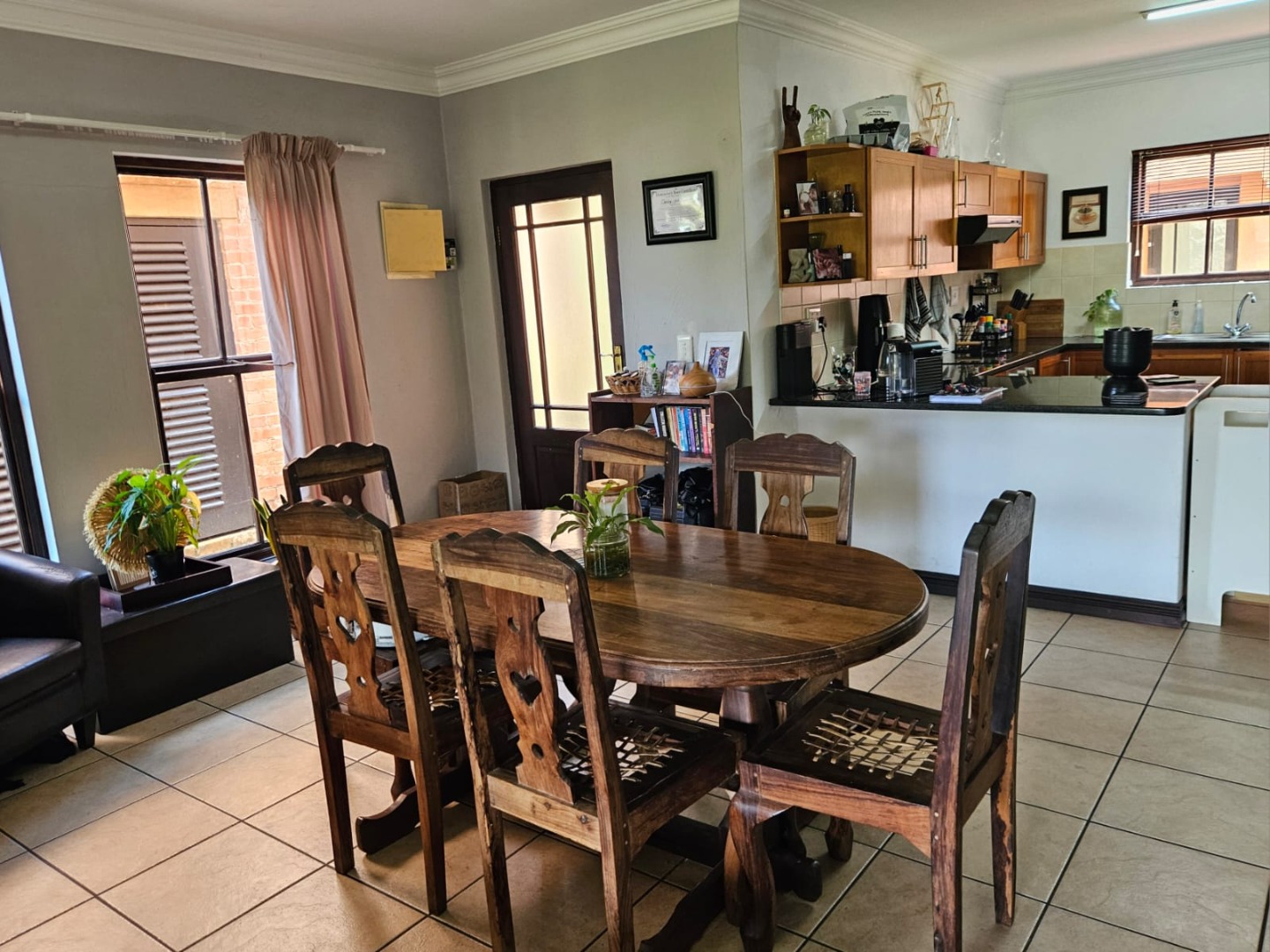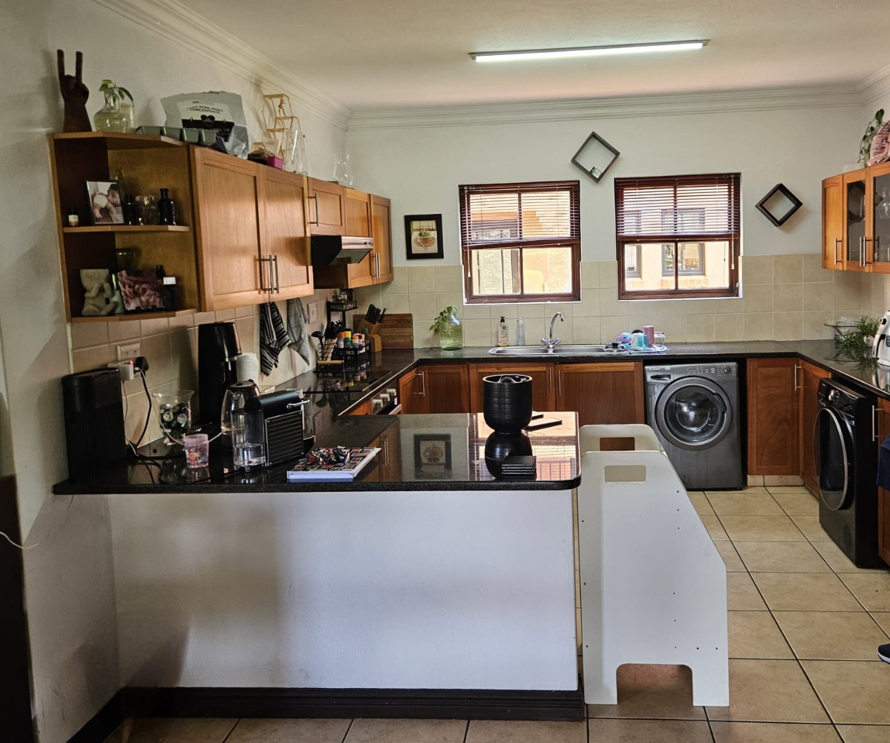 Beautifully positioned in a sectional title village, this lovely spacious duplex of 128m2 offers loads of living space and a gorgeous kitchen. The well-appointed kitchen has a large breakfast area for serving and entertaining.