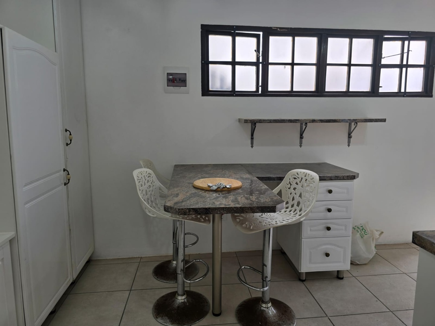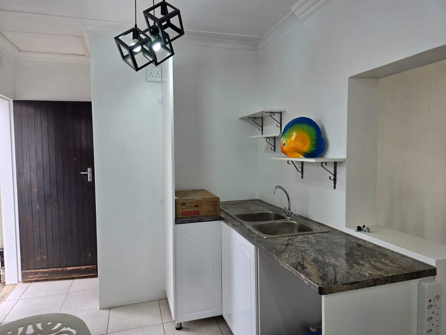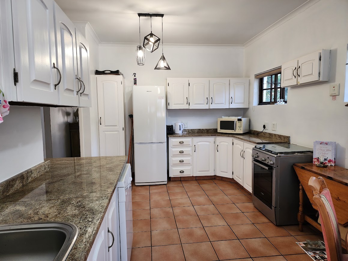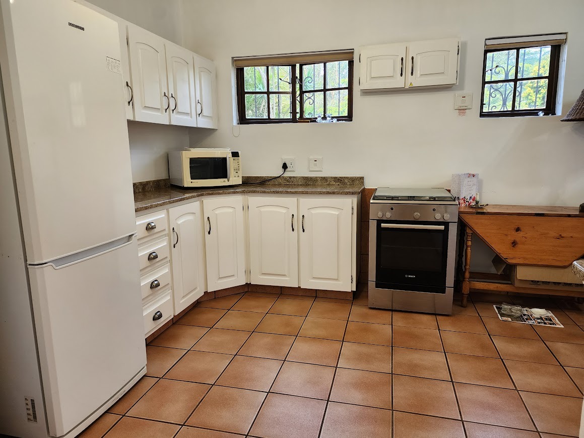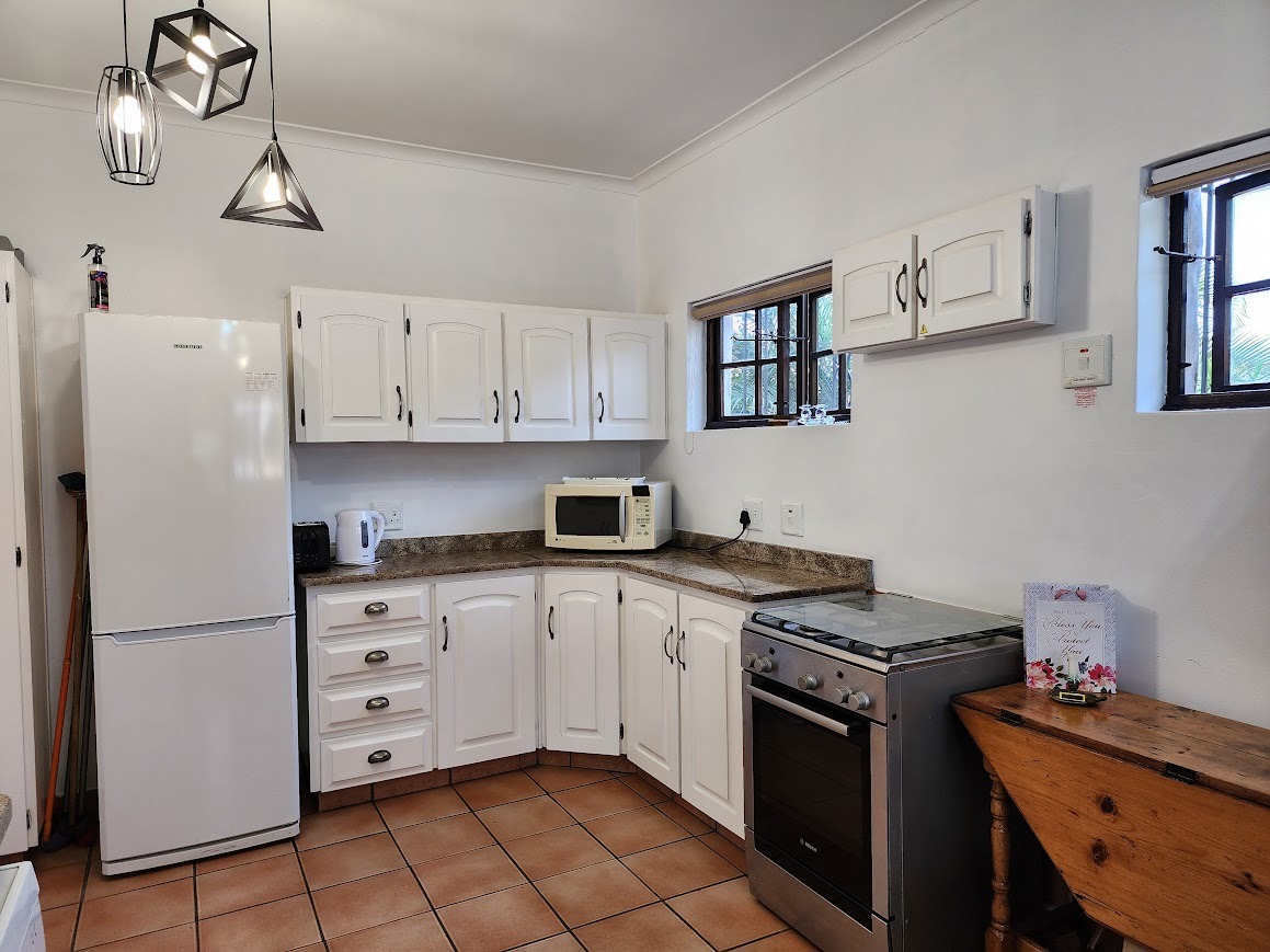 The cottage offers a modern kitchen, gas geyser, 1 bedroom with built in cupboards and a comfortable lounge which is open plan to the kitchen. There is a breakfast area with stools within the kitchen.