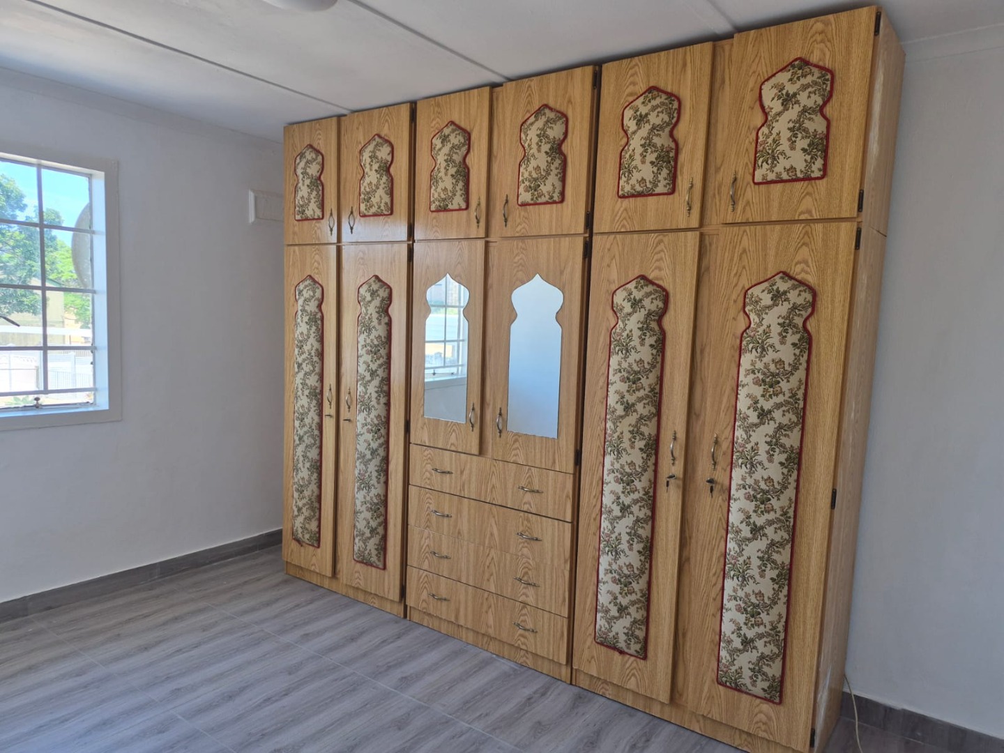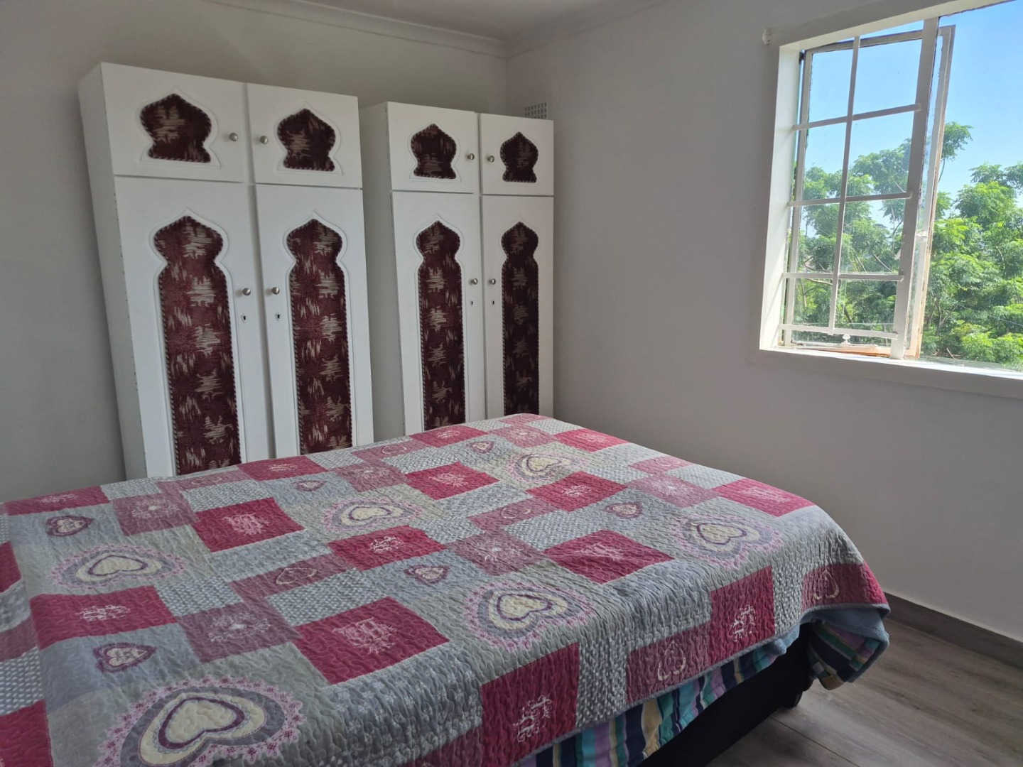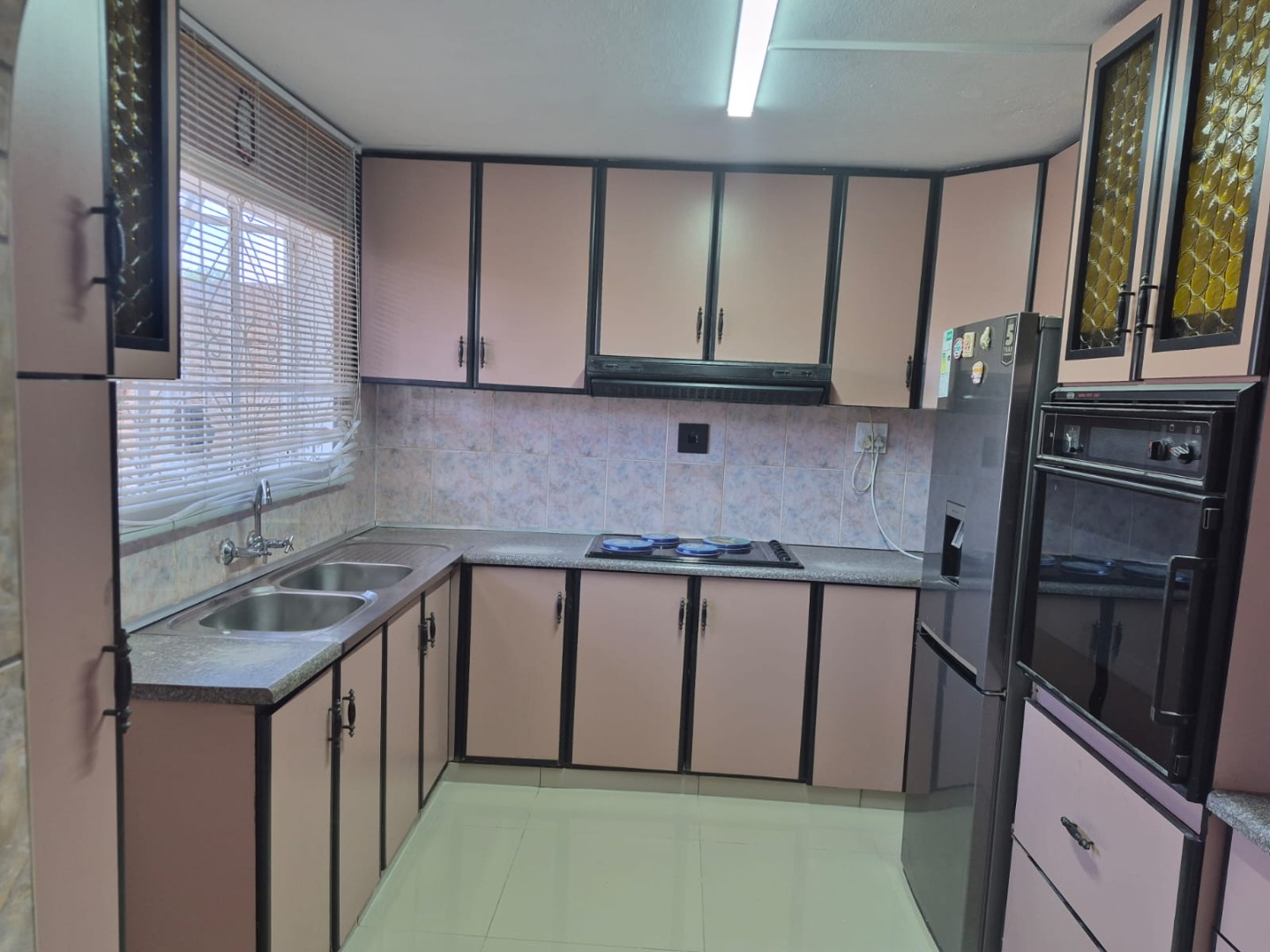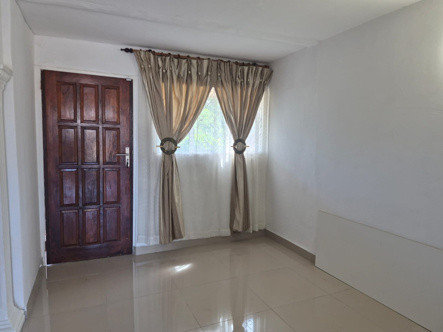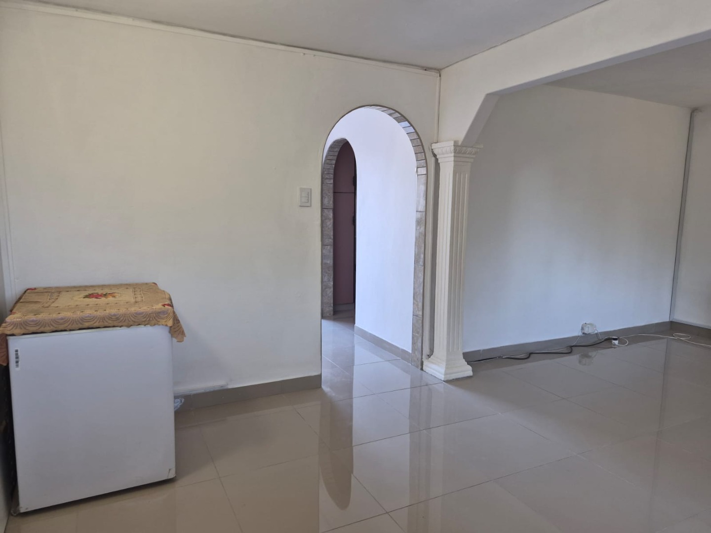 Discover this inviting 3-bedroom, 1-bathroom rental property situated in the suburban area of Greenbury, Phoenix. The interior boasts clean, glossy tiled floors and freshly painted white walls throughout, creating a bright and welcoming ambiance. Architectural details such as decorative arched doorways and ornate dark wood doors add character to the living spaces, which include a comfortable lounge and a dedicated dining room.