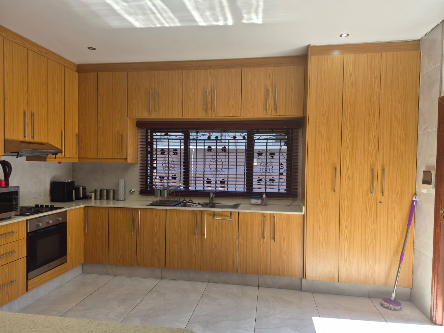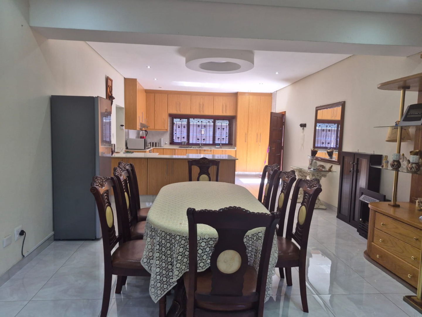 The kitchen is impressively large and well-appointed, featuring ample built-in cupboards, making it both practical and elegant for everyday use and entertaining alike.