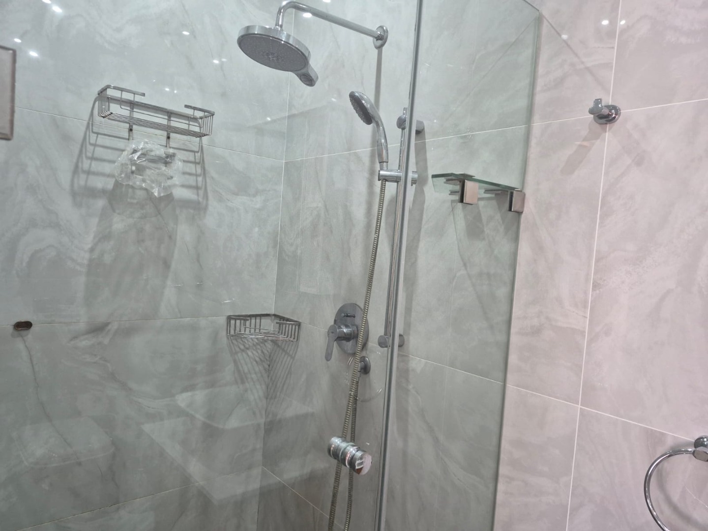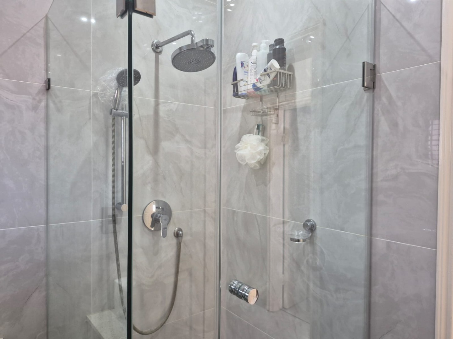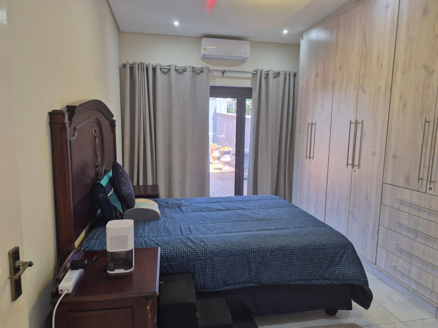 All three bedrooms are exceptionally spacious, each offering abundant cupboard space and individual air-conditioning units for added comfort. The luxurious master bedroom boasts a jacuzzi en-suite bathroom, while the second bedroom also features its own en-suite with a shower. The third bedroom is serviced by a separate, well-appointed bathroom with a shower.